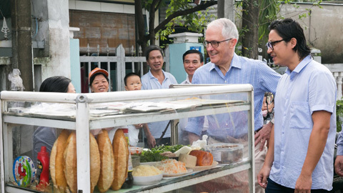 Thủ tướng Úc nhấm nháp bánh mì vỉa hè Đà Nẵng