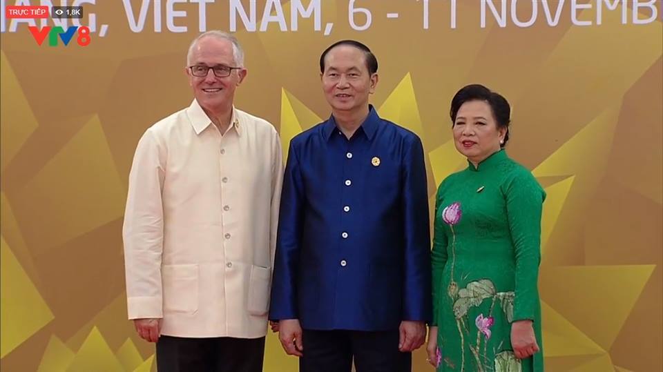 | Chủ tịch nước Trần Đại Quang và phu nhân chụp ảnh cùng Thủ tướng Australia Malcolm Turnbull |