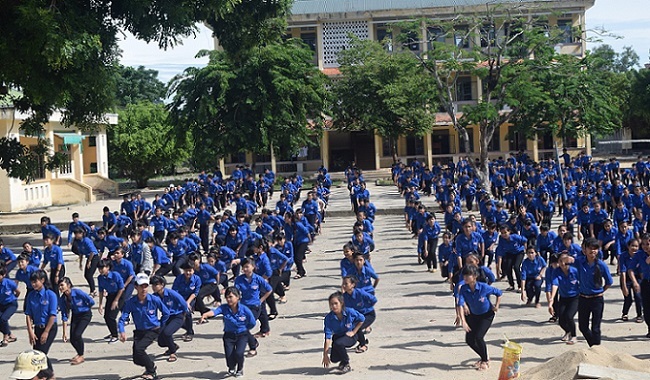 Học sinh tập thể dục giữa giờ tại trường THPT DTNT Quảng Ngãi |