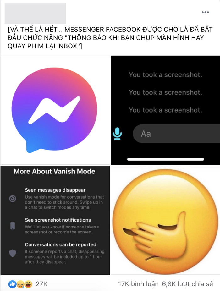 Theo tìm hiểu, tính năng này đã bắt đầu được Facebook triển khai đối với một số người dùng nước ngoài vào thời điểm giữa năm nay, nhằm cho phép người dùng phát hiện ai đang đó đang thực hiện hành vi chụp màn hình trên Messenger.