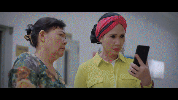 Vừa về nhà, đang lúc đợi thang máy thì hàng xóm vội chạy đến đưa điện thoại cho bà Hiền (NSND Lan Hương) xem đoạn clip con gái bà bị con dâu đánh ghen khiến bà Hiền sốc nặng.
