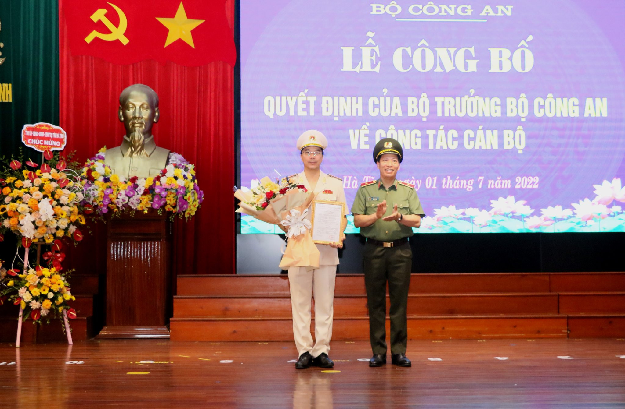 Sáng nay (1/7), tại Hà Tĩnh, Thiếu tướng Lê Văn Tuyến, Thứ trưởng Bộ Công an công bố quyết định về việc bổ nhiệm Thượng tá Nguyễn Hồng Phong, Phó cục trưởng Cục An ninh đối nội giữ chức Giám đốc Công an tỉnh Hà Tĩnh.
