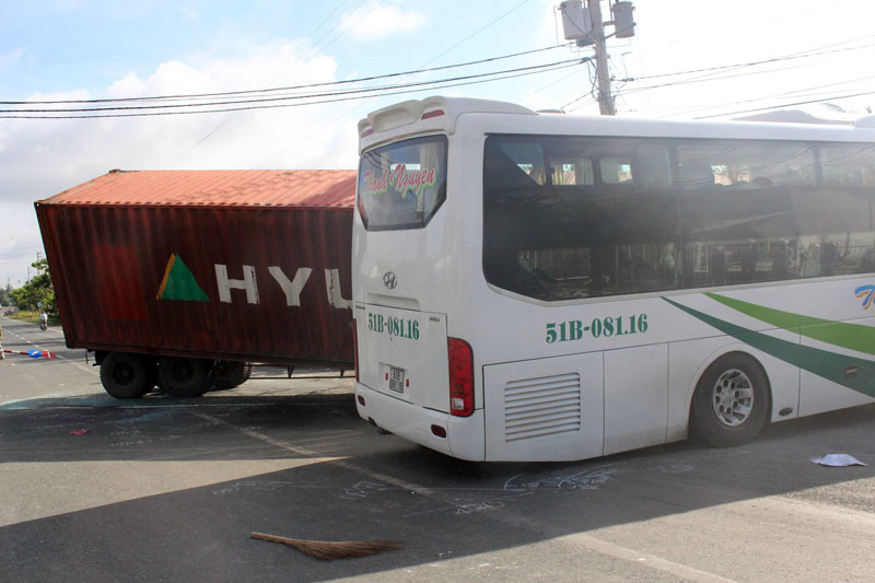 Chiếc xe khách giường nằm chạy tuyến miền Tây đi Sài Gòn đang lưu thông trên đường bất ngờ va chạm với xe container khiến 17 người thương vong.