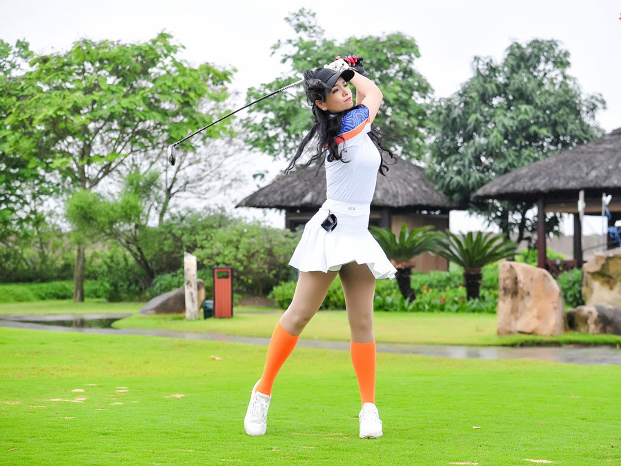 Cựu người mẫu Thuý Hằng, diễn viên Kim Oanh, Á hậu Thanh Tú xinh đẹp trên sân golf.