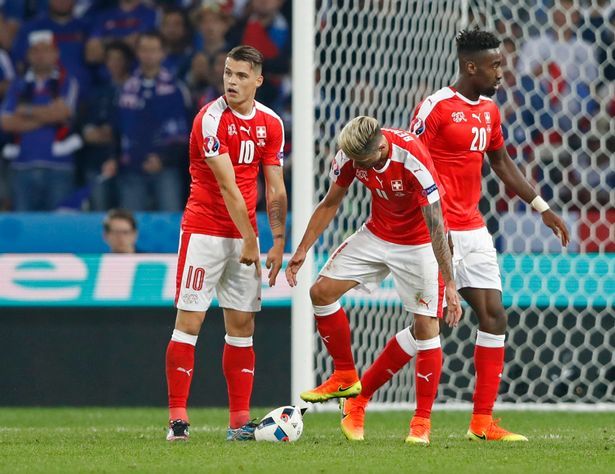 Ngôi sao hàng công của Albania, Xhaka đã có hành động không đẹp sau khi bị HLV trưởng Giovanni De Biasi thay ra ở phút 62.