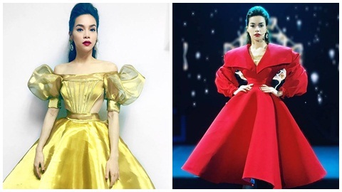 Diện đầm cut-out màu đỏ bắt mắt nhưng vô tình Thu Minh đã để lộ vòng 2 kém săn chắc. Chi Pu đứng trên sân khấu The Voice Kids với chiếc mũ nồi từng là mốt của vài năm trước đây.