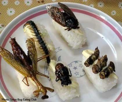 Câu lạc bộ ăn các con bọ của Tokyo đã tổ chức một lễ hội để cổ xúy cho phong trao ăn côn trùng và phục vụ các món ăn 'dễ sợ': sushi và bánh côn trùng.