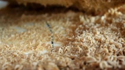 Một loại phô-mai của Italy đầy giòi (ảnh trên) và phải được thưởng thức khi giòi còn sống và đang lúc nhúc (ảnh dưới)