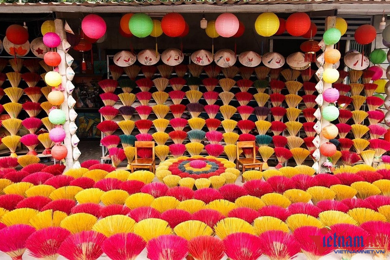 Đến với làng hương Thuỷ Xuân những ngày cuối tháng 8, du khách có dịp tham quan, “check in” với những bó hương được nhuộm xanh, đỏ, tím, vàng xếp thành nhiều hình dáng khác nhau, như những đóa hoa to lớn nhiều màu sắc nằm san sát hai bên đường Huyền Trân Công Chúa.