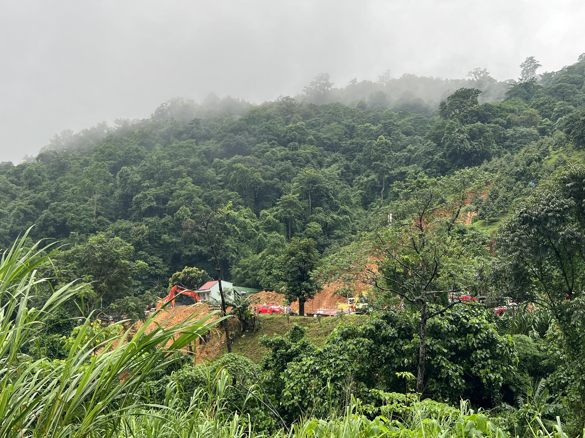 Ở khu vực sạt lở, sáng 31/7 trời mưa. Nhiều lực lượng cùng hàng loạt máy móc được huy động tới hiện trường tìm người còn kẹt. Hàng tấn đất đá được múc lên, đưa ra khỏi vị trí sạt lở.