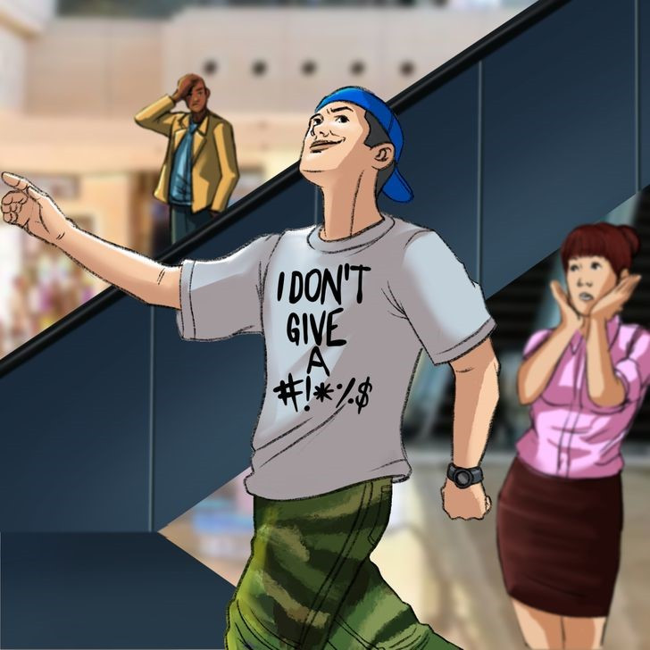 Bạn muốn chuyến bay của mình diễn ra suôn sẻ. Tốt hơn hết là nên tránh những chiếc áo phông có họa tiết phản cảm. Bạn có thể bị loại khỏi chuyến bay nếu ăn mặc không phù hợp. Trên các chuyến bay cũng có trẻ em và bạn không bao giờ biết được điều gì sẽ khiến mọi người cảm thấy khó chịu. Vì vậy tốt nhất là bạn nên mặc đồ một cách an toàn.