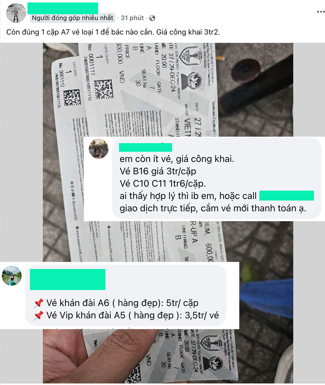 Ngoài "chợ vé" trực tiếp bán quanh khu vực sân Mỹ Đình, trong những ngày qua, trên thị trường "chợ vé" trên mạng xã hội, giá vé đã được đẩy lên cao ngất ngưởng. Đặc biệt là loại vé với vị trí ngồi đẹp (giữa khán đài A,B).