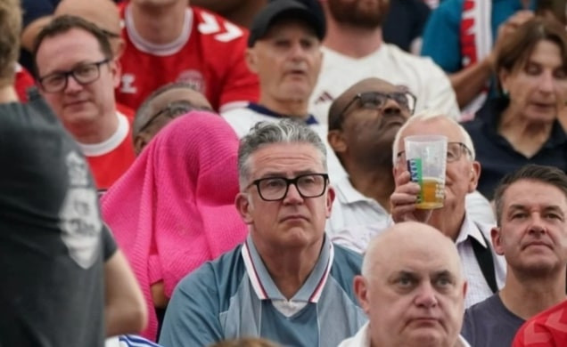 Hình ảnh chụp được trên khán đài cho thấy, một người phụ nữ dùng chiếc khăn màu hồng che kín mặt trong khi theo dõi một trận đấu bóng đá giải Euro 2024.