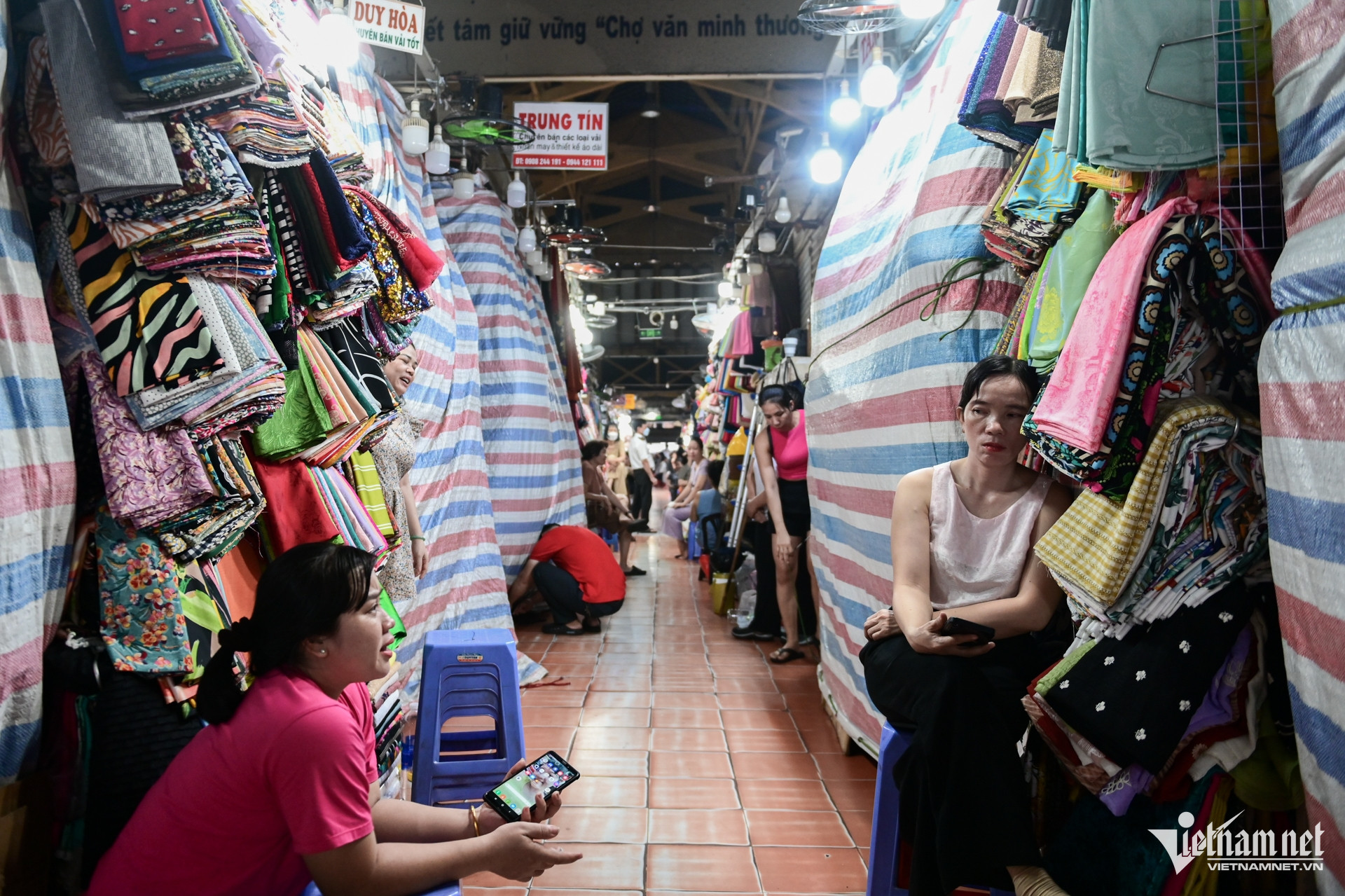 Còn tại khu vực bán vải ở chợ Tân Định, khách khá thưa thớt. Theo một chủ hàng, bây giờ nhu cầu về vải giảm do mọi người hay mua quần áo may sẵn.