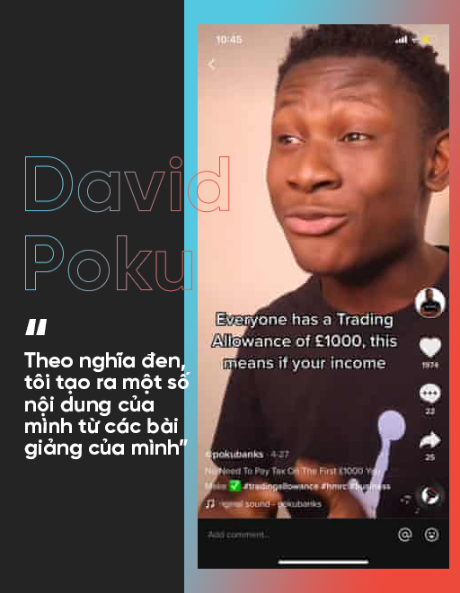 David Poku, 20 tuổi, bắt đầu tạo video tài chính cá nhân trên TikTok vào tháng 1/2020 và tự hào có hơn 330.000 người theo dõi. Cậu bắt đầu quan tâm đến tiền "vì không có kiến thức về tài chính ở trường học" như cậu đã chia sẻ.