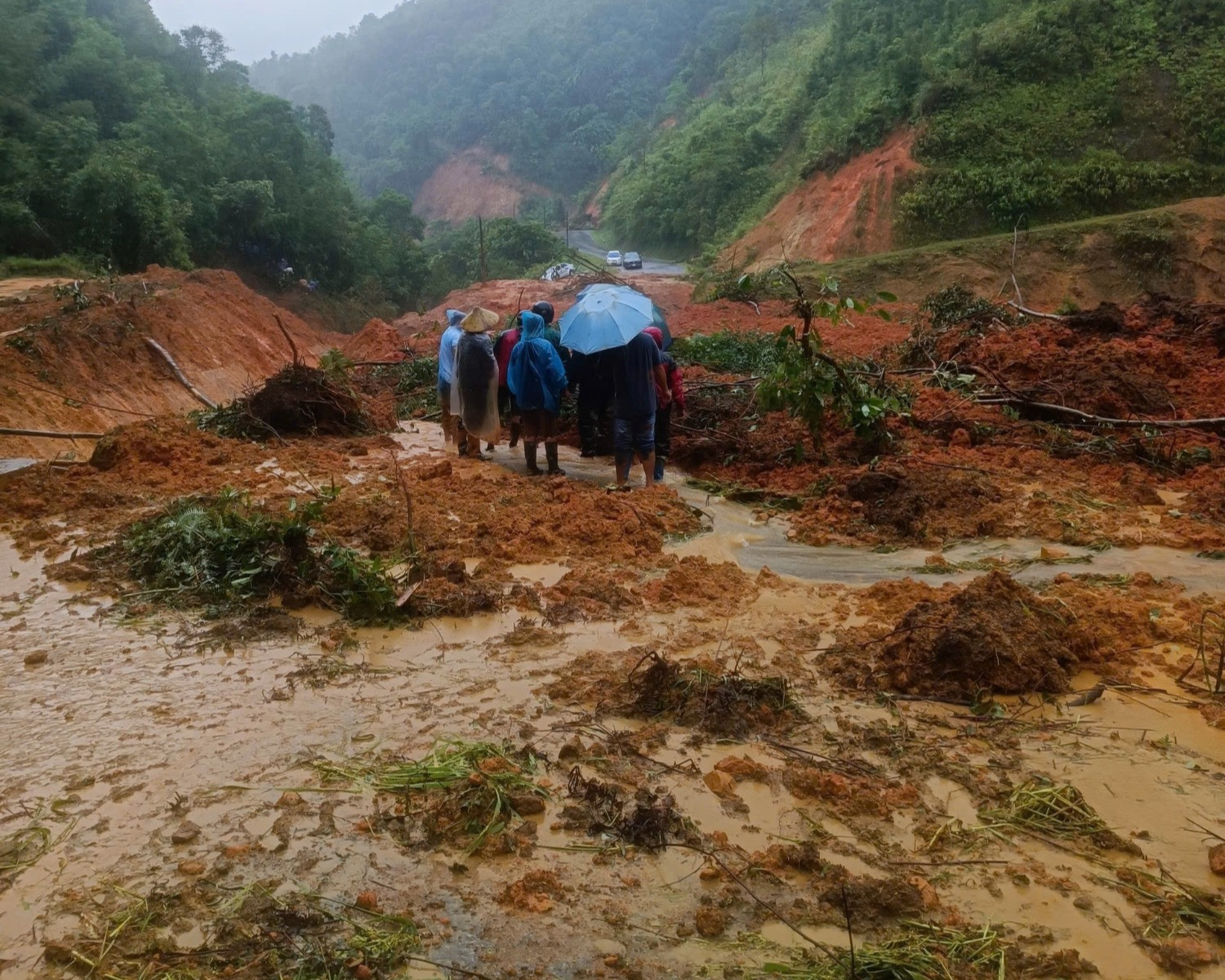 Sạt lở khiến giao thông bị ách tắc, các phương tiện ô tô, xe máy không thể di chuyển được gây khó khăn cho lực lượng chức năng khi tiếp cận để thực hiện công tác cứu nạn cứu hộ.