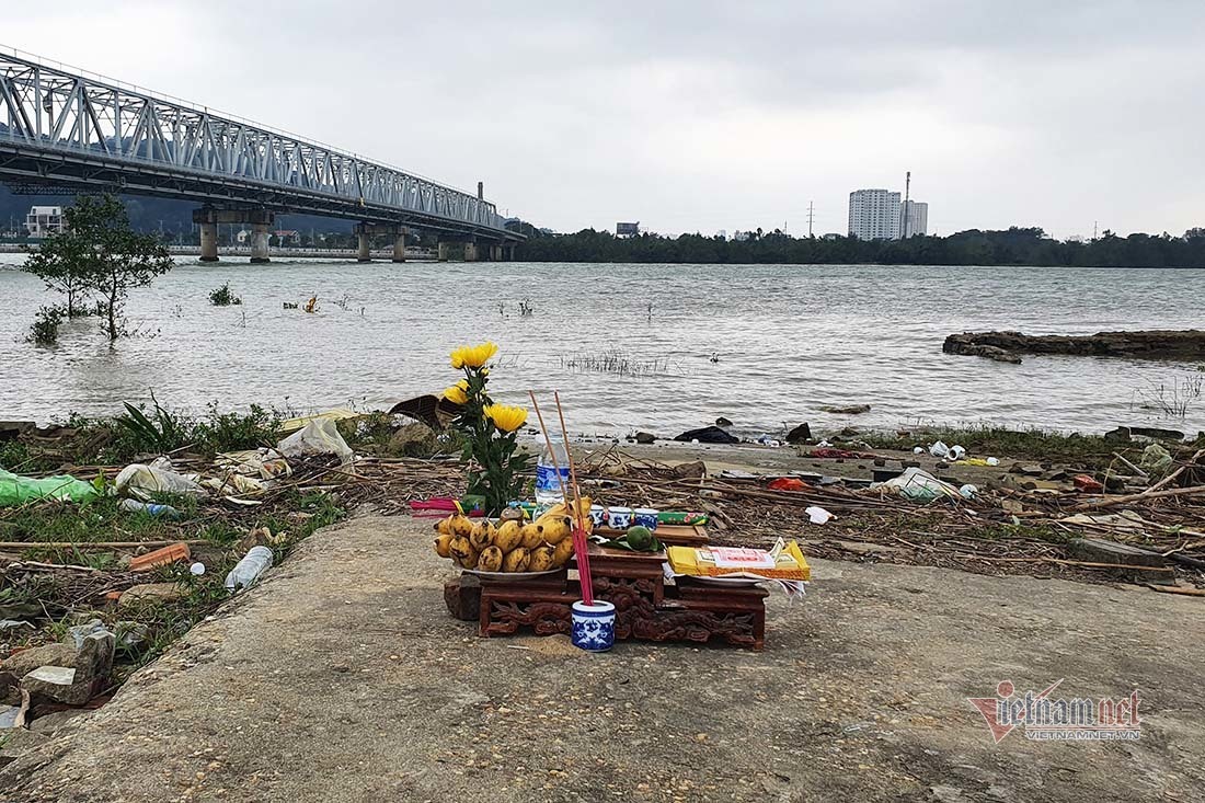 | Gia đình chị N. lập bàn thờ bên dòng sông Lam |