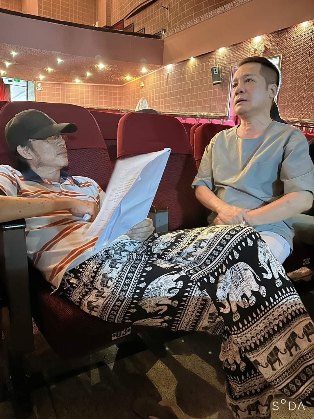 Tin sao Việt ngày 24/11: Trên trang cá nhân, nghệ sĩ Gia Bảo đăng hình ảnh Hoài Linh, Minh Nhí ngồi tập kịch. Hoài Linh dạo gần đây xuống cân, vẻ mặt lộ rõ sự mệt mỏi.