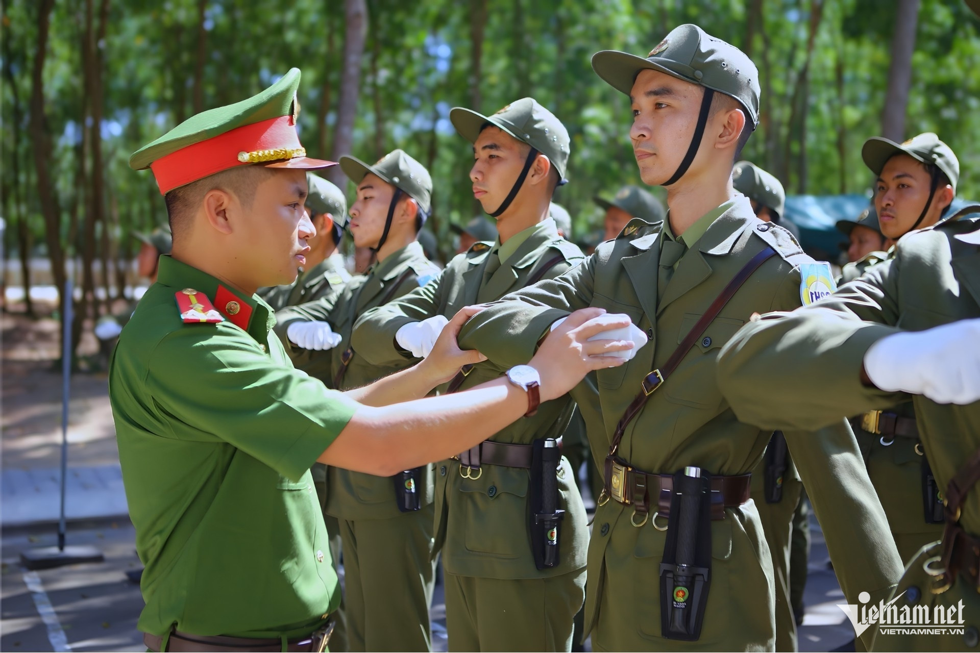 Các khối diễu binh, diễu hành của lực lượng công an nhân dân tập trung cao độ, từng bước chân, động tác đều răm rắp theo hiệu lệnh. Trên sân tập, những giọt mồ hôi thấm đẫm nhưng không ai chùn bước.