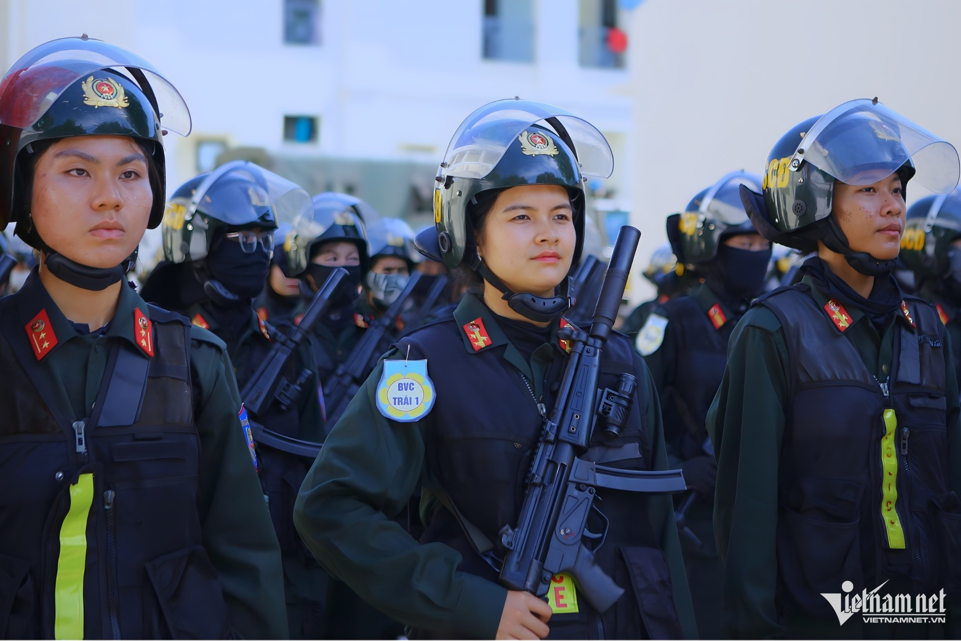Giữa hàng ngũ nghiêm trang của khối nữ chiến sĩ Cảnh sát đặc nhiệm, Trương Tú Linh, học viên Trường đại học Cảnh sát nhân dân nổi bật với gương mặt đầy quyết tâm.