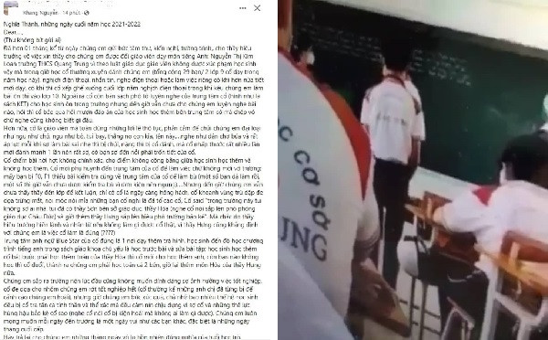Cuối bài viết, tài khoản này cho biết đã hơn 1 tháng gửi tâm thư, kiến nghị lên hiệu trưởng nhà trường để đổi giáo viên dạy tiếng Anh, nhưng chưa được giải quyết.