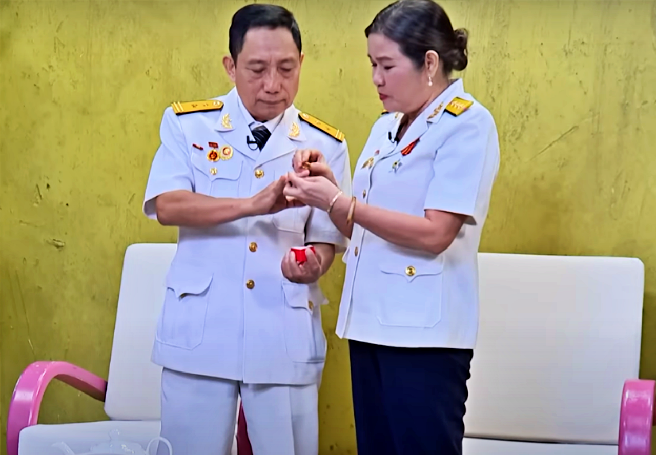 Sau đó, ông bà trao nhau chiếc nhẫn như một cách nhắc lại kỷ niệm ngày thành vợ thành chồng.