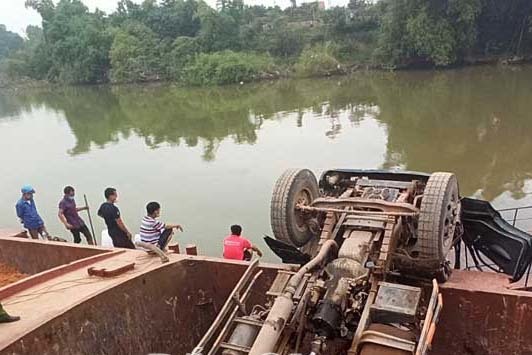 Xe tải chở đất lật xuống sông ở Bắc Giang, tài xế mất tích