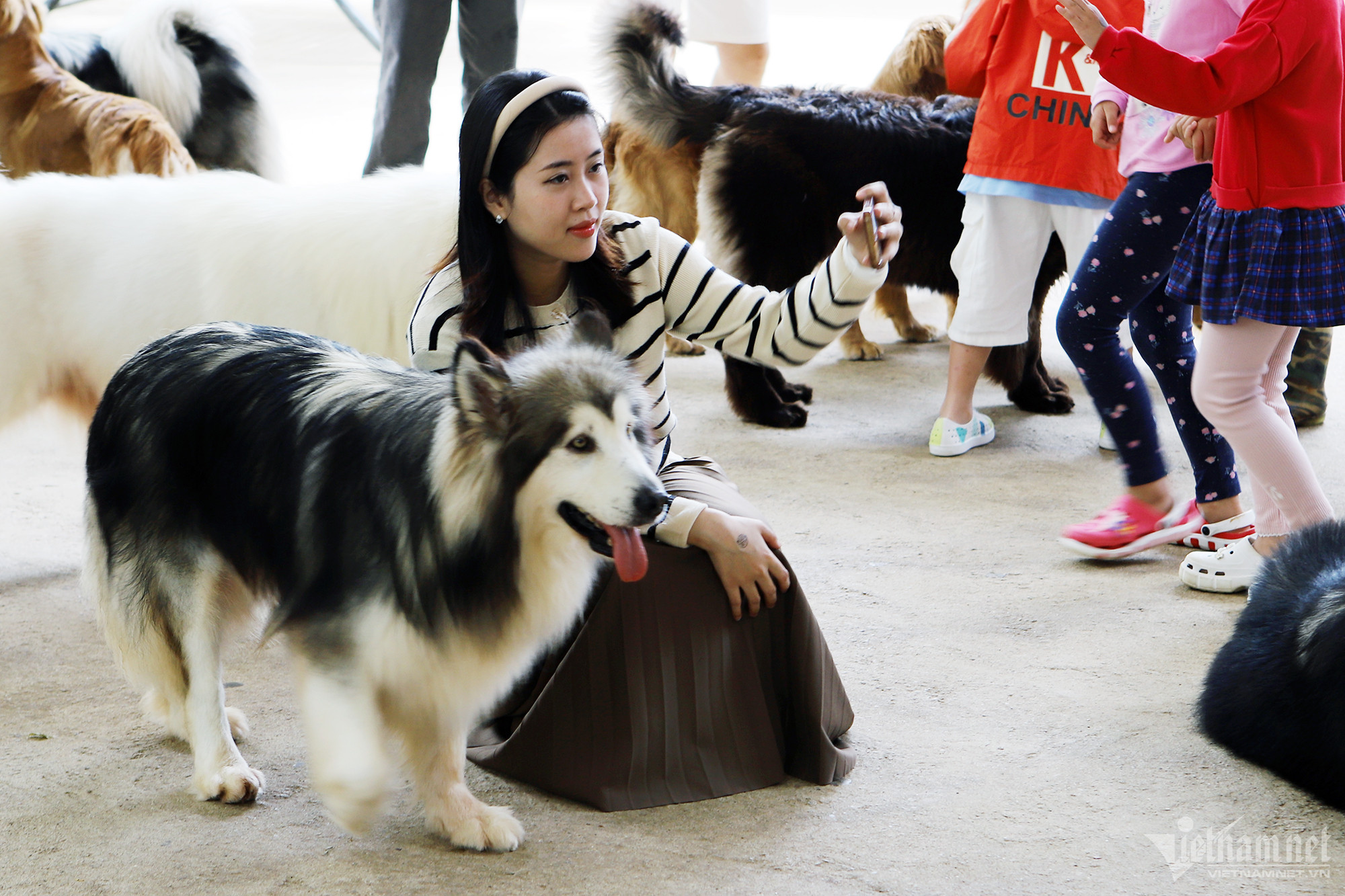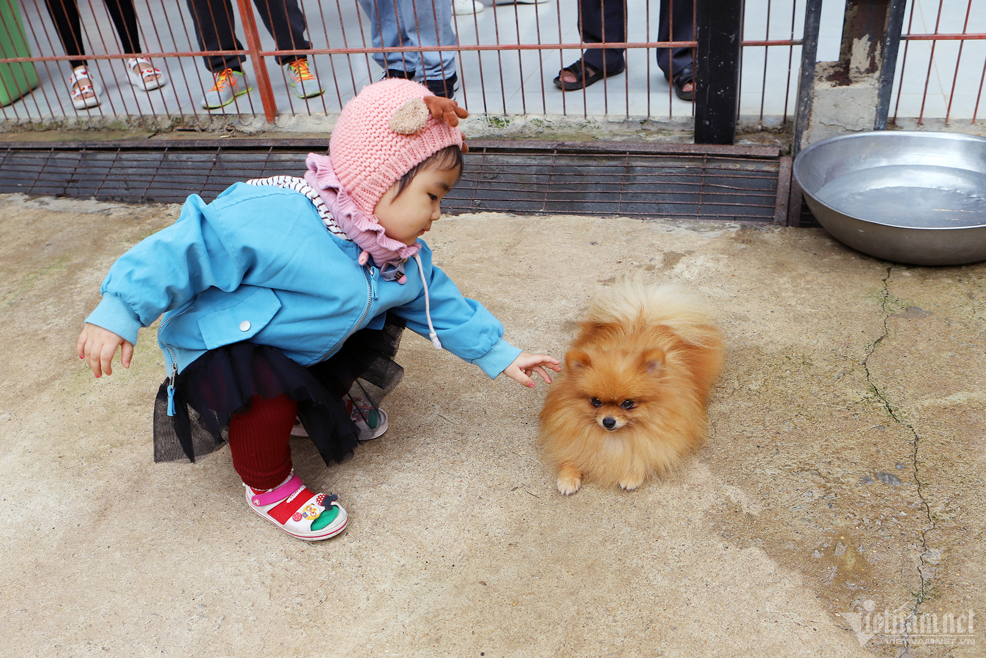 Những đứa trẻ thích thú khi ngắm những chú cún với bộ lông xù óng mượt. Nhiều trẻ tiến lại gần rồi cho thức ăn lên tay để các chú cún thỏa sức ăn mà không hề sợ hãi. Nhiều người còn ôm ấp, vuốt ve cún.