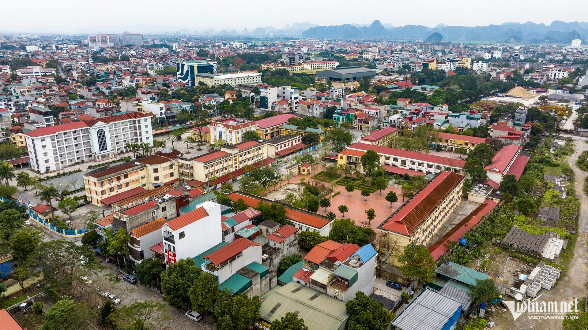 Với mục tiêu tiếp tục nâng cao các tiêu chí của đô thị loại I, trong giai đoạn từ nay đến năm 2030, Hoa Lư sẽ tập trung đầu tư, nâng cấp, cải tạo và xây mới các công trình xanh. Trong ảnh, Trường THCS Ninh Thành và Tiểu học Tân Thành nằm chung trong một mảnh đất, ngay gần sân vận động Ninh Bình.