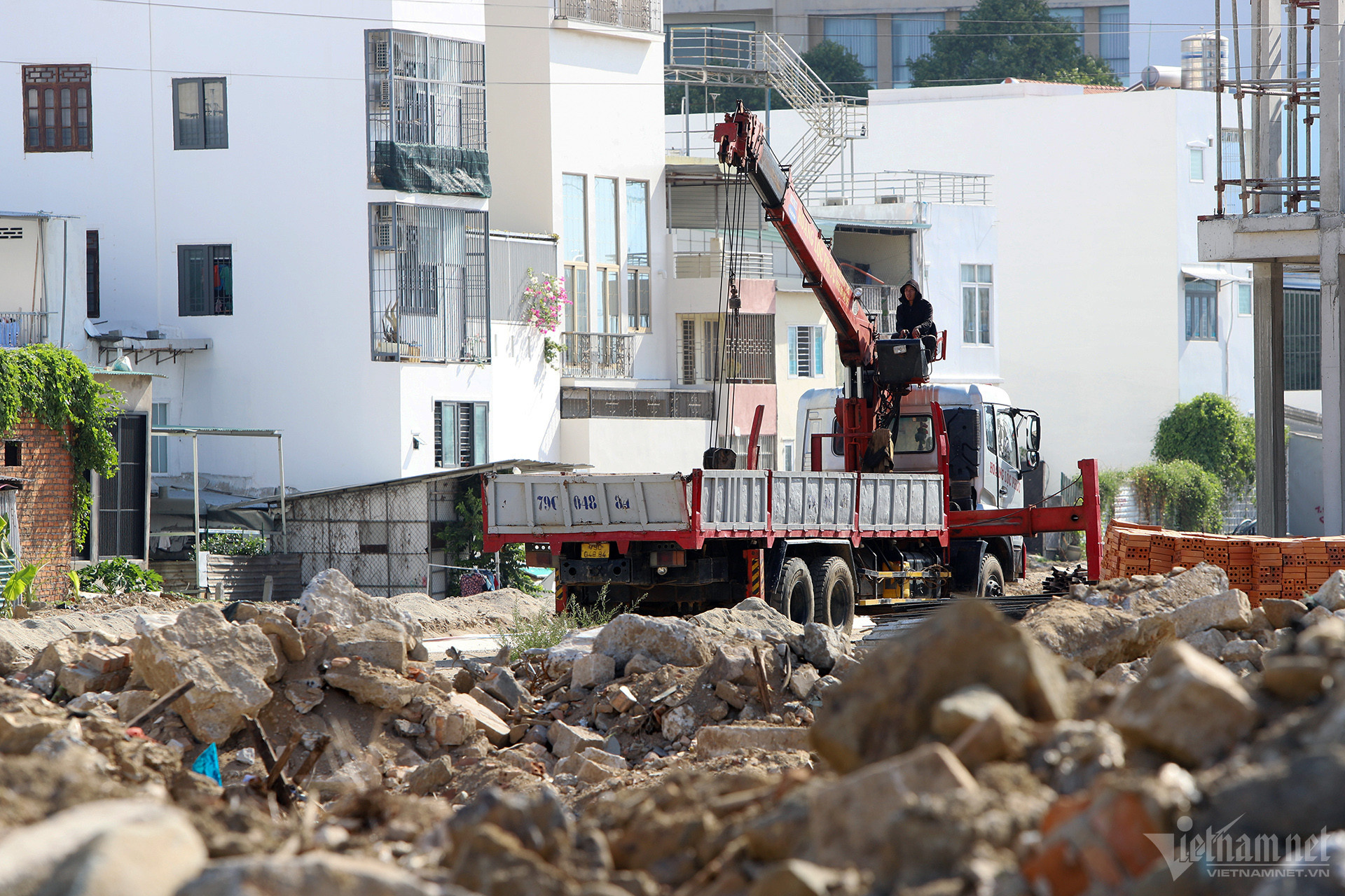 Chủ đầu tư làm hạ tầng, đường sá. Nhiều vị trí còn là bãi đất trống đang được làm mặt bằng, cạnh đó là bê tông, đất đá vương vãi.