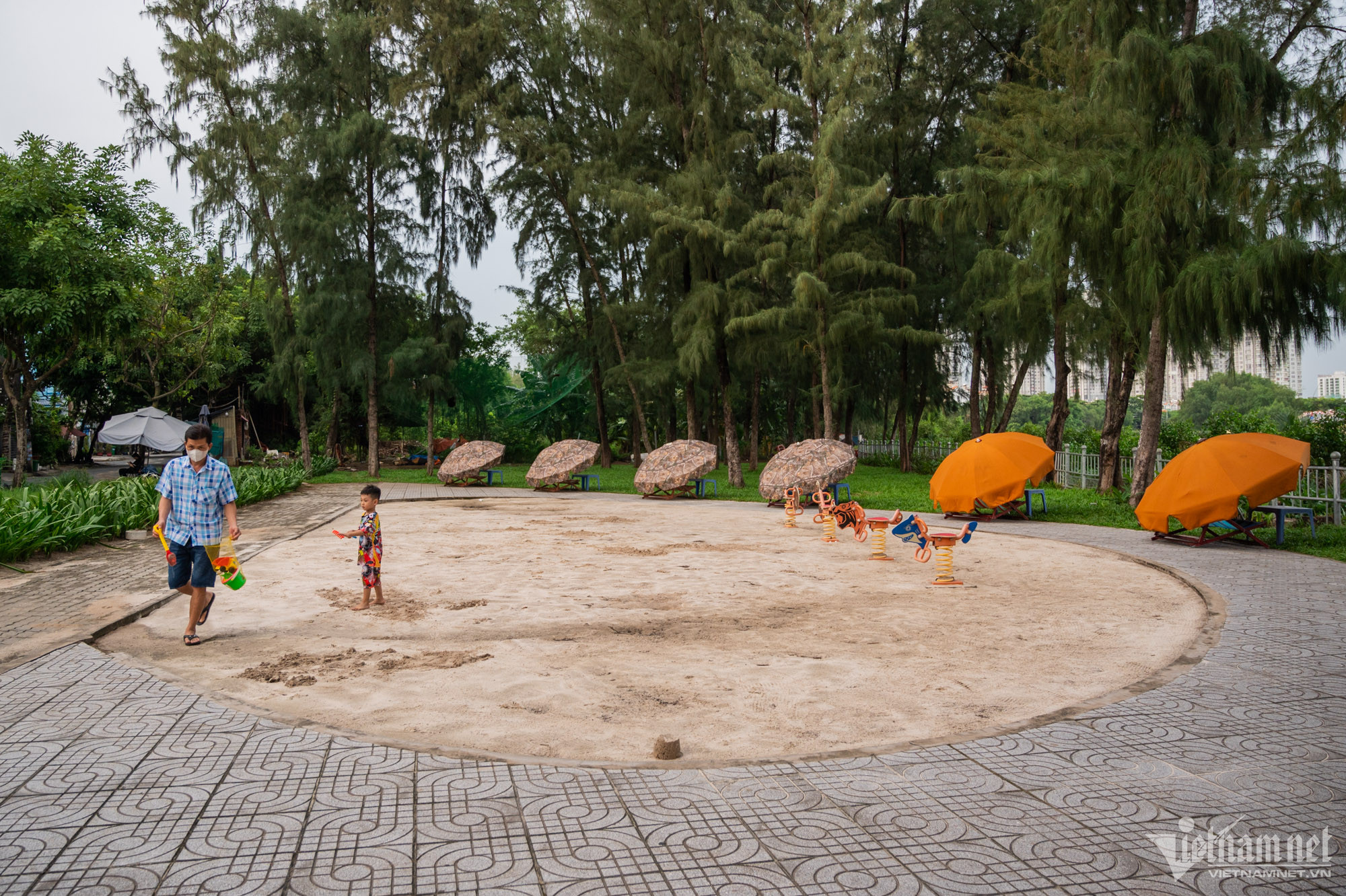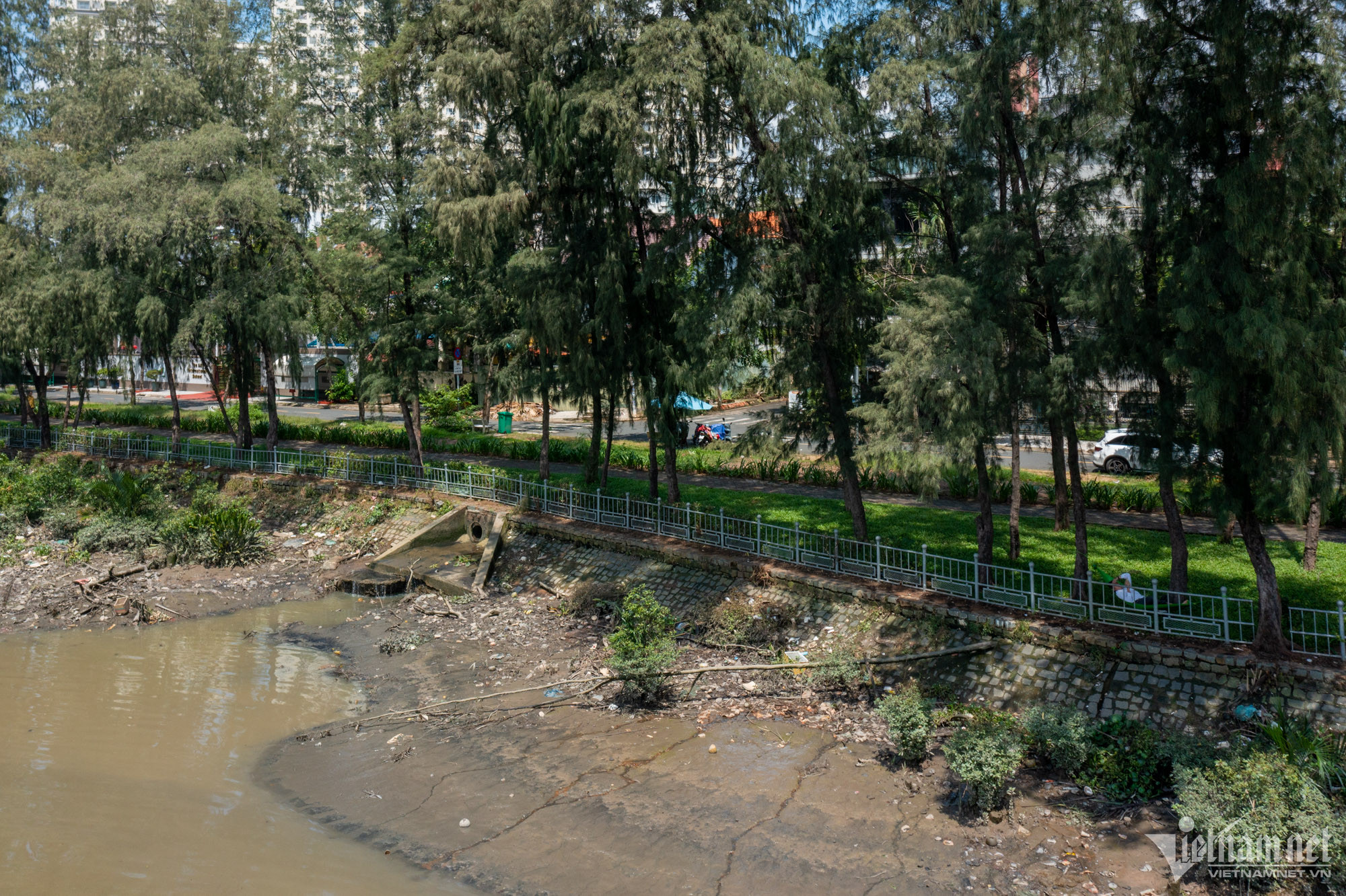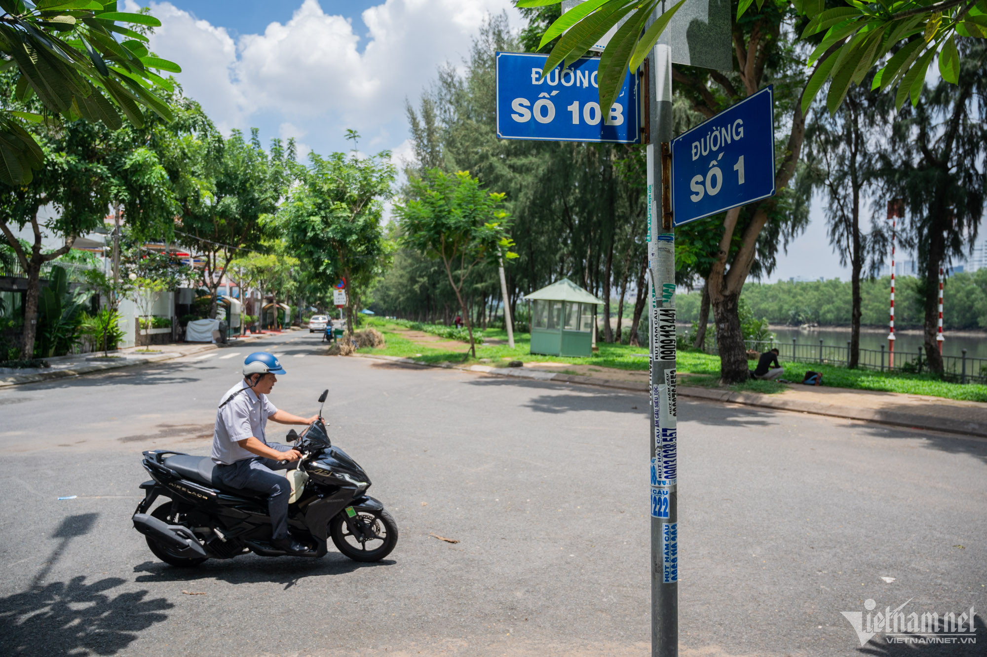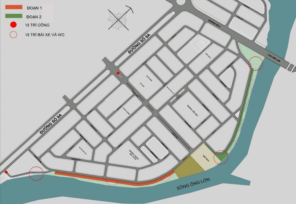 Dọc theo đường số 1, phần lớn khu vực bờ kè men theo rạch Ông Lớn đã được lắp lan can, đảm bảo an toàn cho người dân. Những khoảng xanh mát của các hàng cây nơi đây được nhiều người dân yêu thích tới nằm nghỉ.