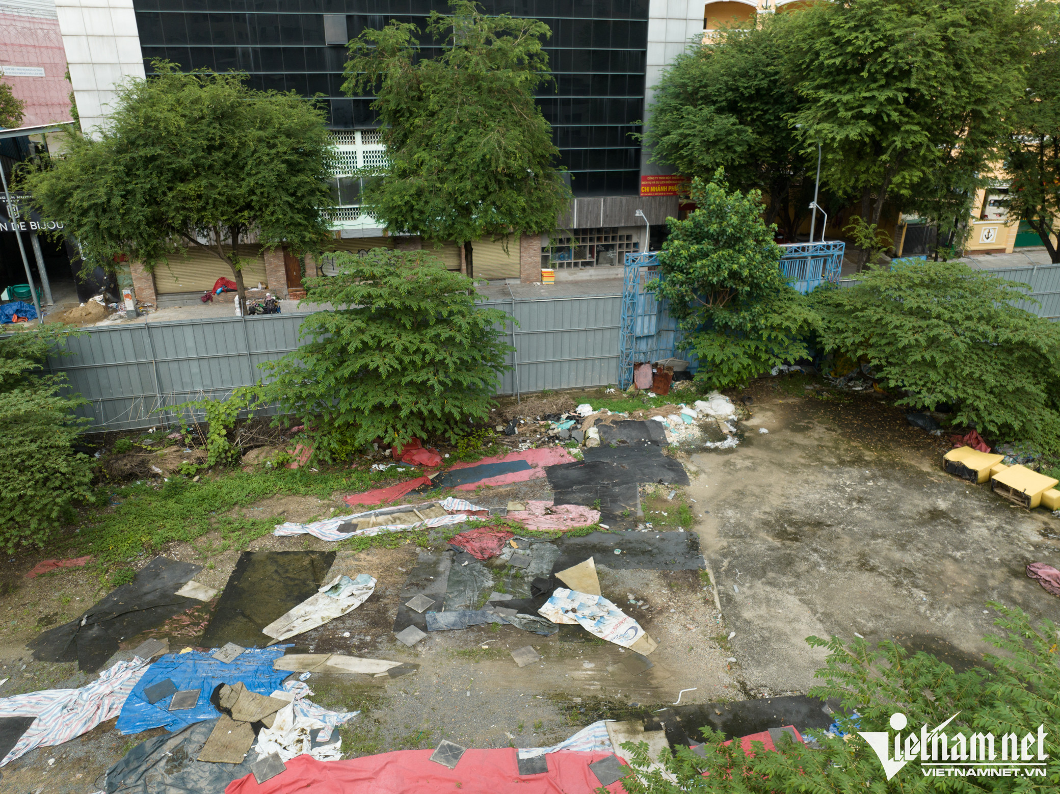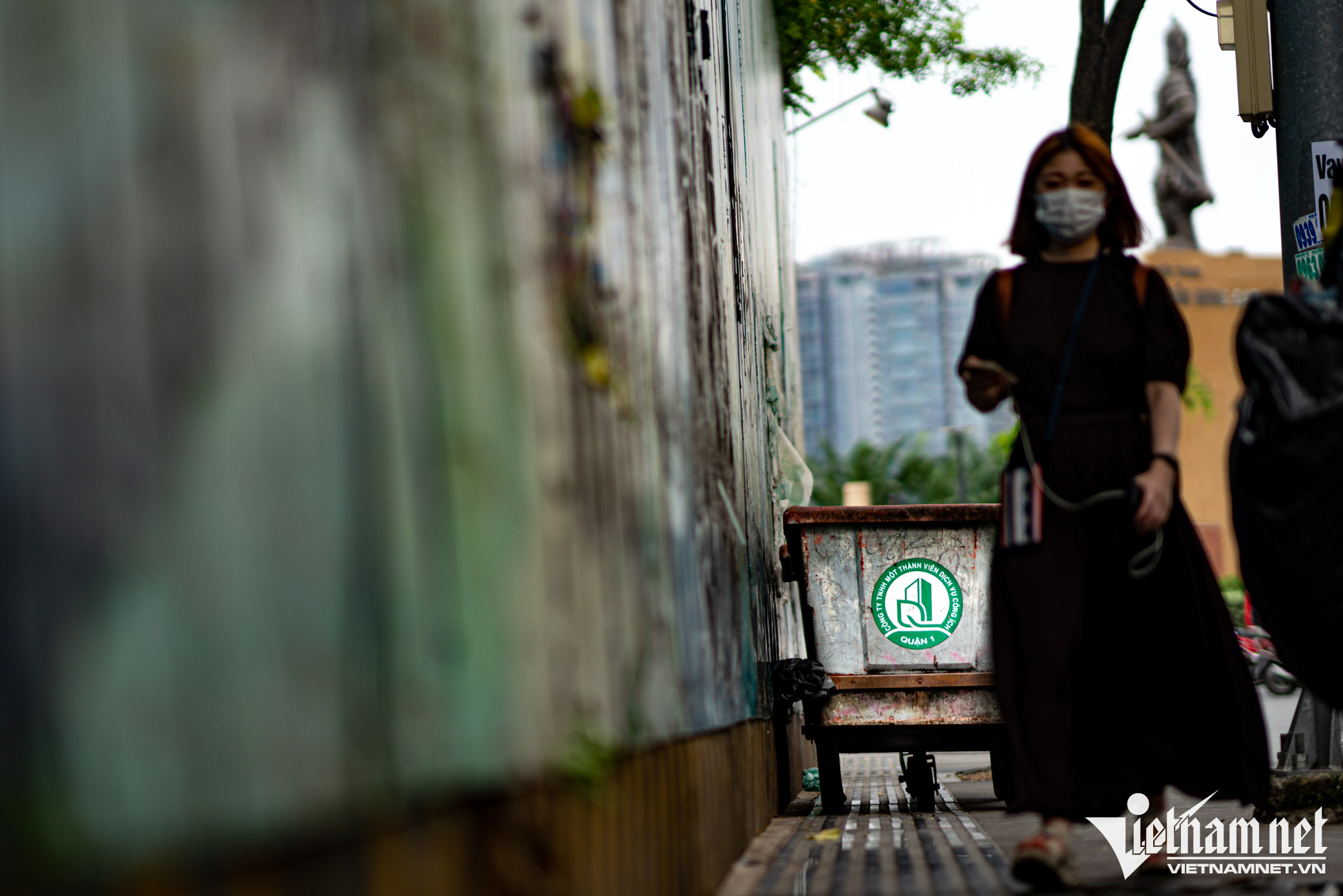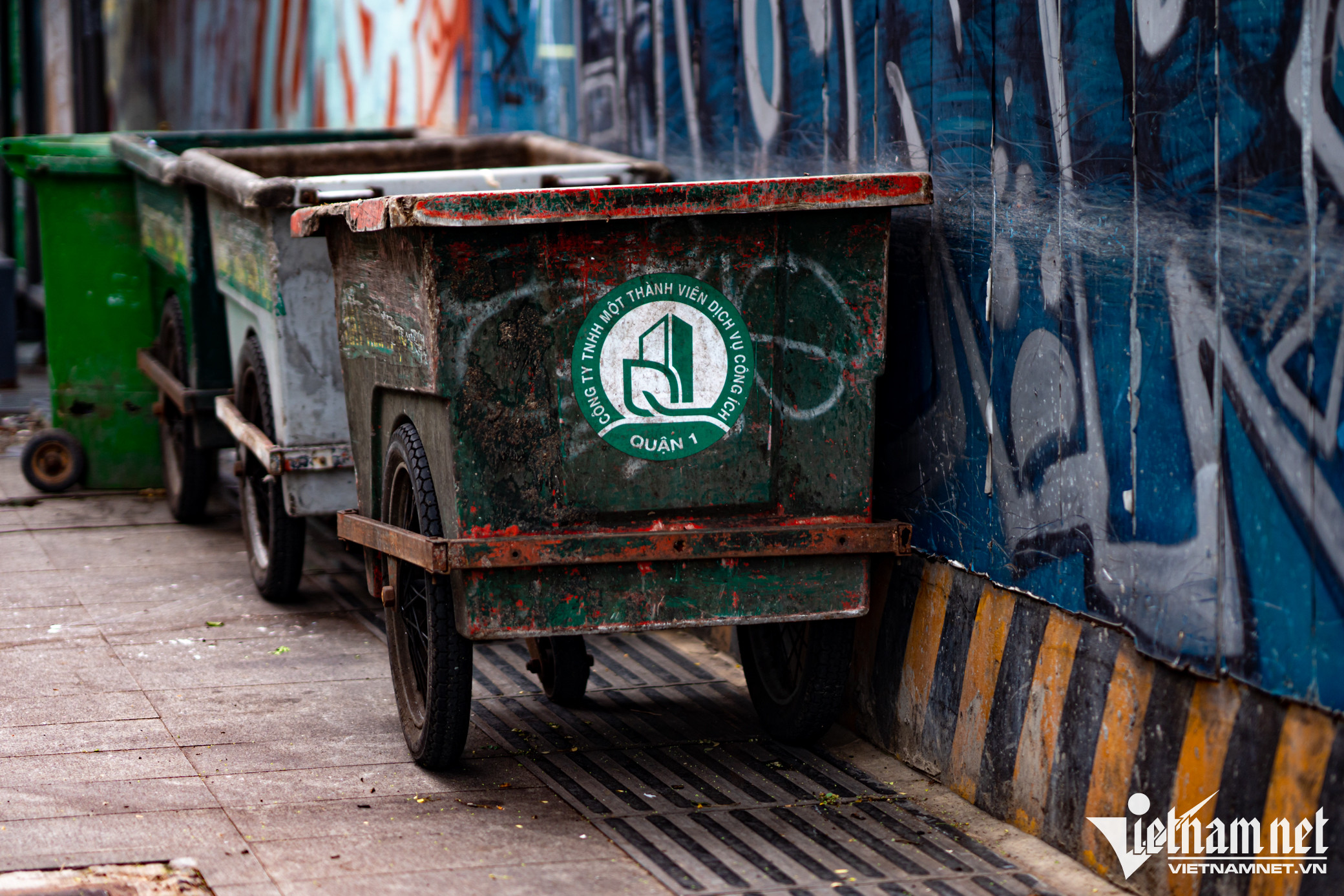 Phía mặt đường Hai Bà Trưng được tận dụng làm nơi tập kết xe rác và rác sinh hoạt của người dân xung quanh.