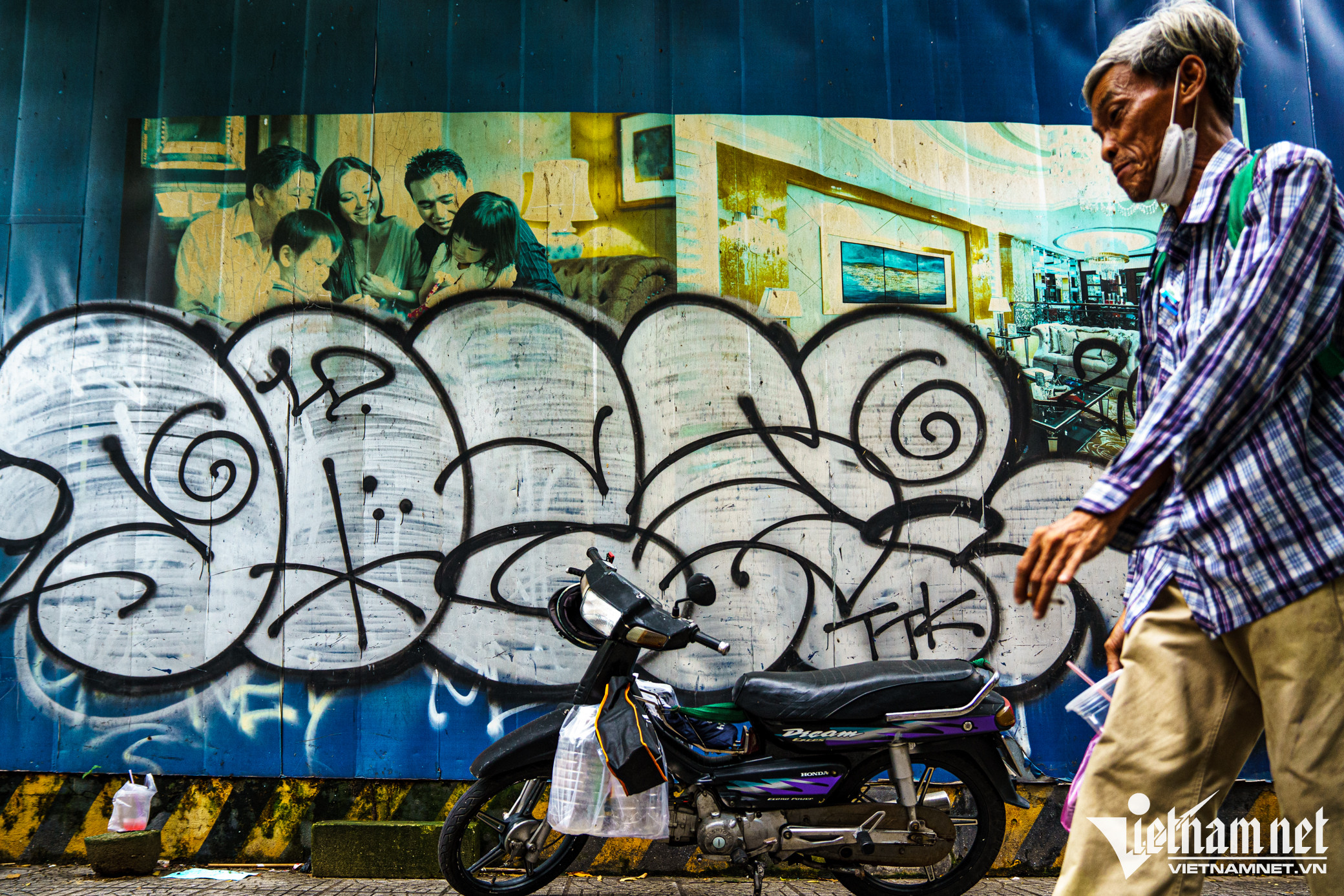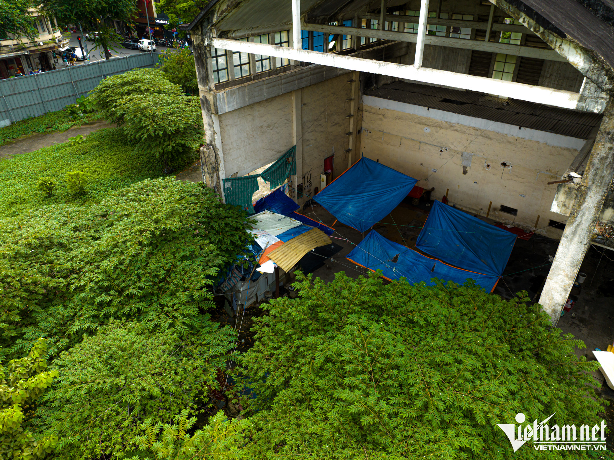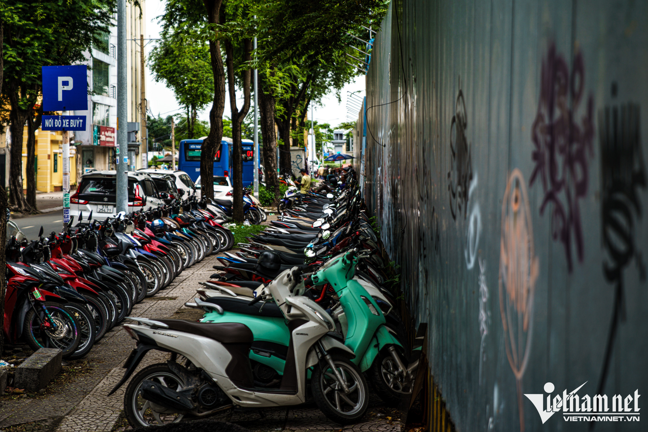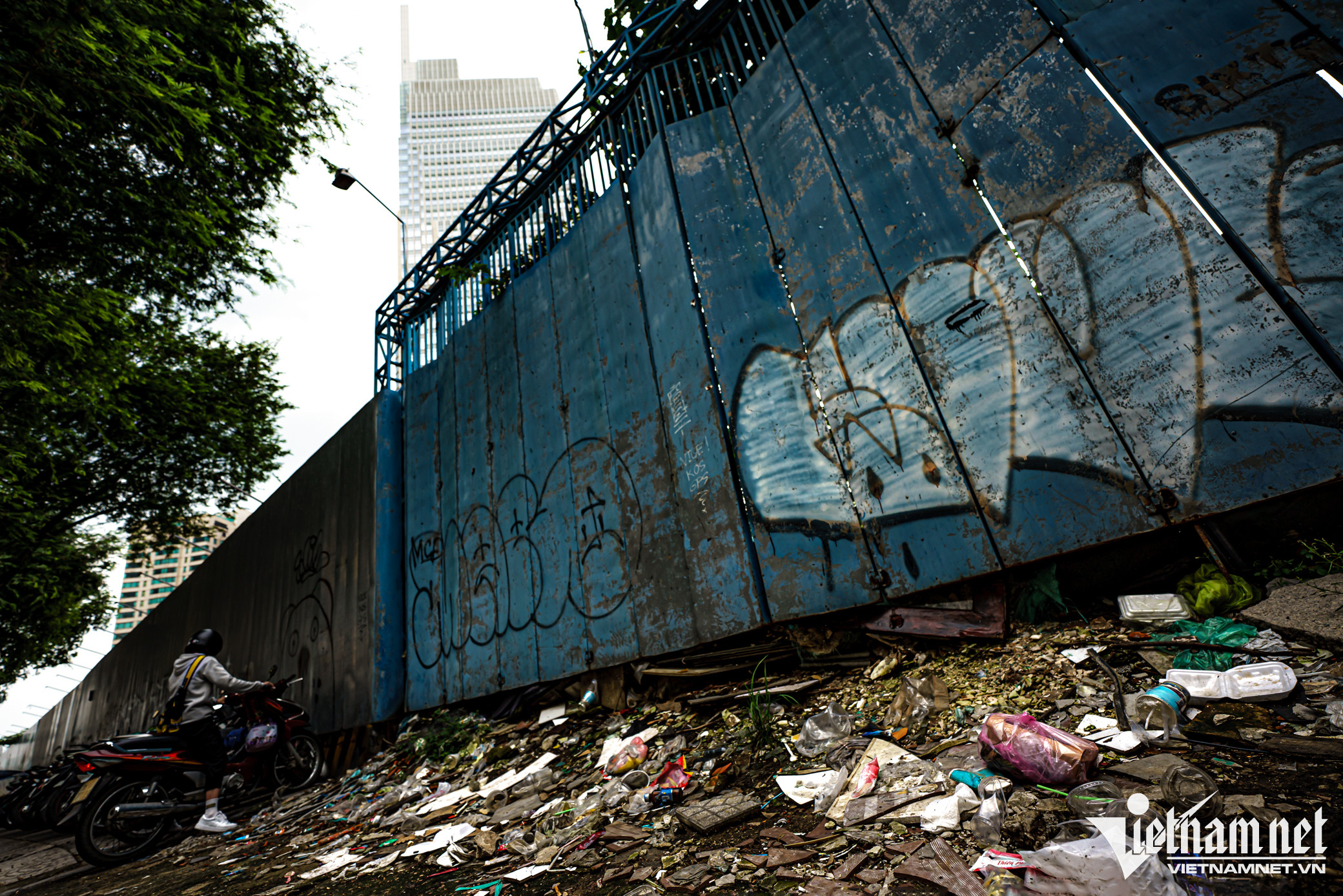 Phía mặt đường Hai Bà Trưng được tận dụng làm nơi tập kết xe rác và rác sinh hoạt của người dân xung quanh.