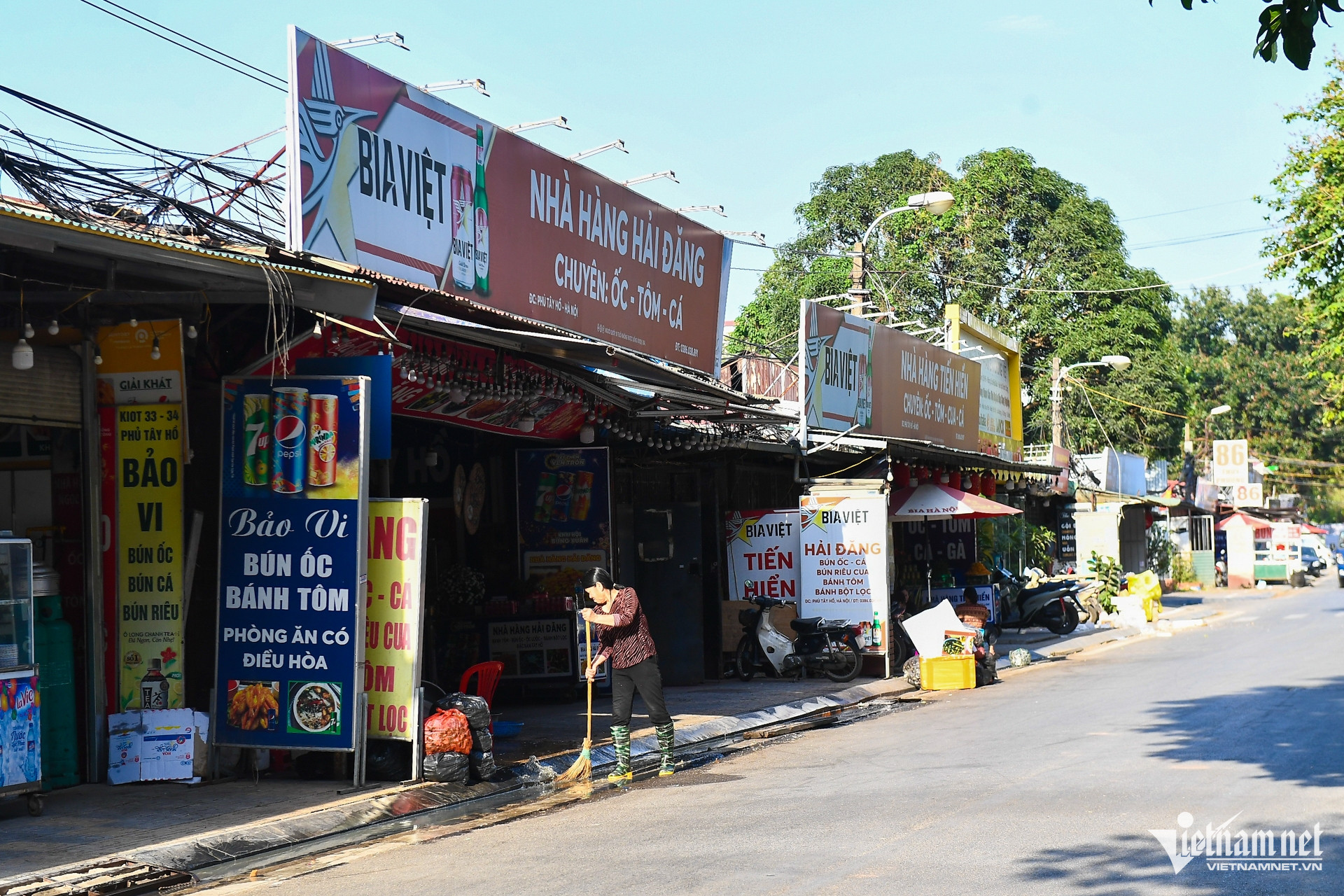 Một phía mặt hồ (giáp với phủ Tây Hồ) là các dãy nhà tạm. Tại đây chủ yếu là hàng quán ăn, gara ô tô... thường xuyên đông đúc vào các dịp lễ, Tết.