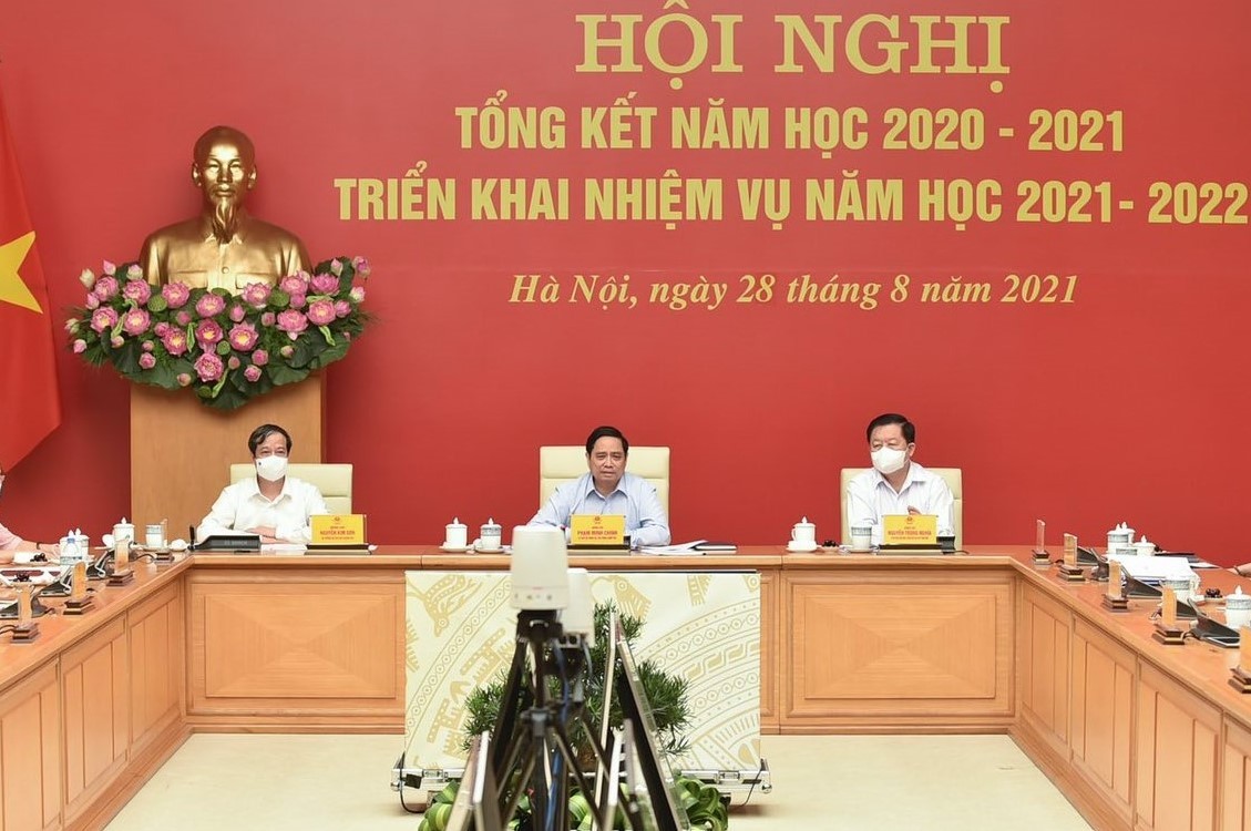 | Thủ tướng phát biểu tại Hội nghị trực tuyến toàn quốc tổng kết năm học 2020-2021, triển khai nhiệm vụ năm học 2021-2022 - Ảnh VGP |