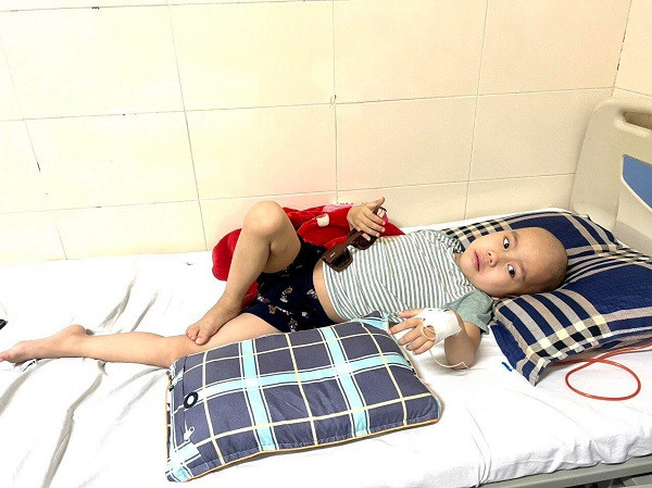 Kể từ ngày con trai Đỗ Sơn Tùng (SN 2018) chào đời đã phát hiện mắc chứng giãn đài bể thận độ 1, đều đặn hàng tháng, chị Vũ Thuỳ Linh (SN 1984) phải đưa con đến bệnh viện khám, lấy thuốc điều trị. Cứ ngỡ con đã đủ bất hạnh thì tháng 6/2023, Tùng bị bí tiểu kéo dài. Qua siêu âm, bác sĩ tìm thấy 2 khối u chèn ép ở niệu quản, bàng quang. Tại Bệnh viện K, kết quả xét nghiệm chỉ ra con mắc bệnh ung thư phần mềm.