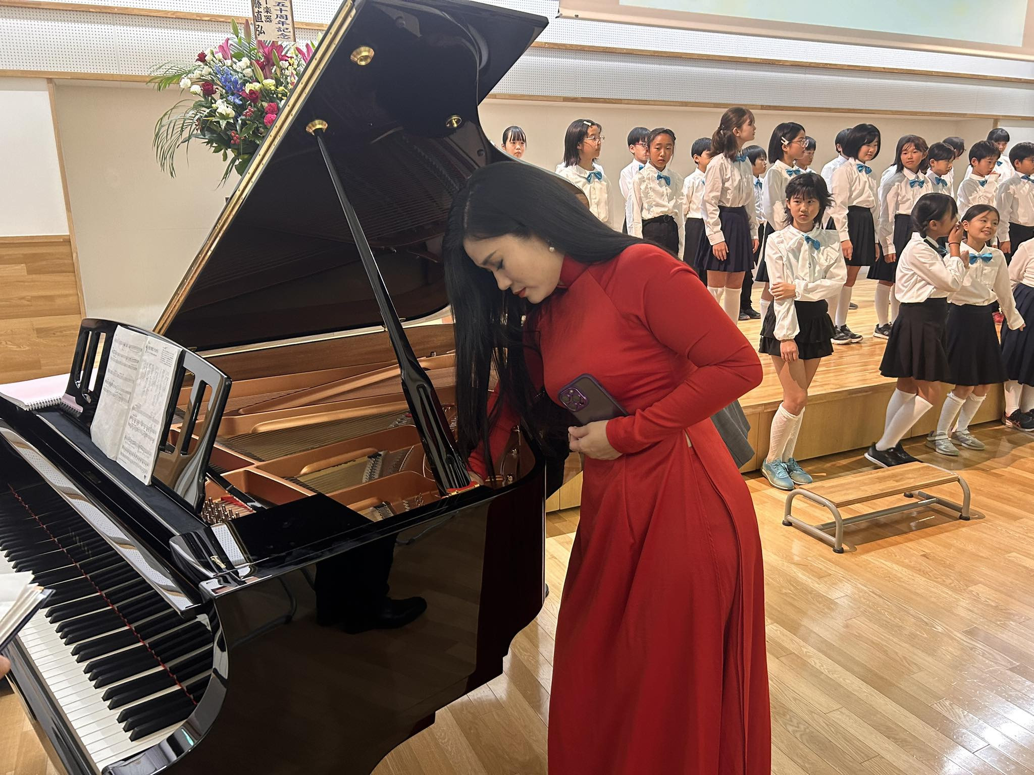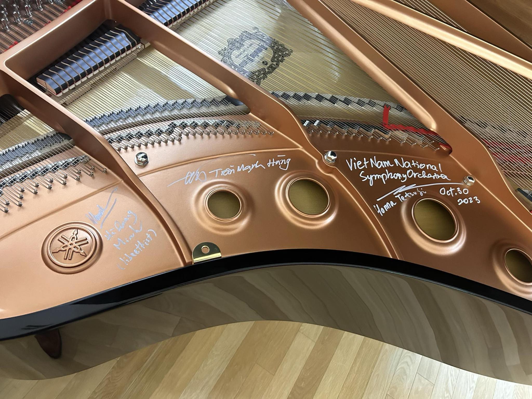 Đào Tố Loan ký lên cây Grand Piano mà nhà tài trợ tặng cho thành phố Kisarazu- Nhật Bản. Ảnh: Hà Quang Minh.