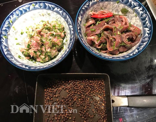 - Bước 2: Băm thịt nhuyễn trộn gia vị, tỏi, hành, lá lốt, tiêu, nấm hương.