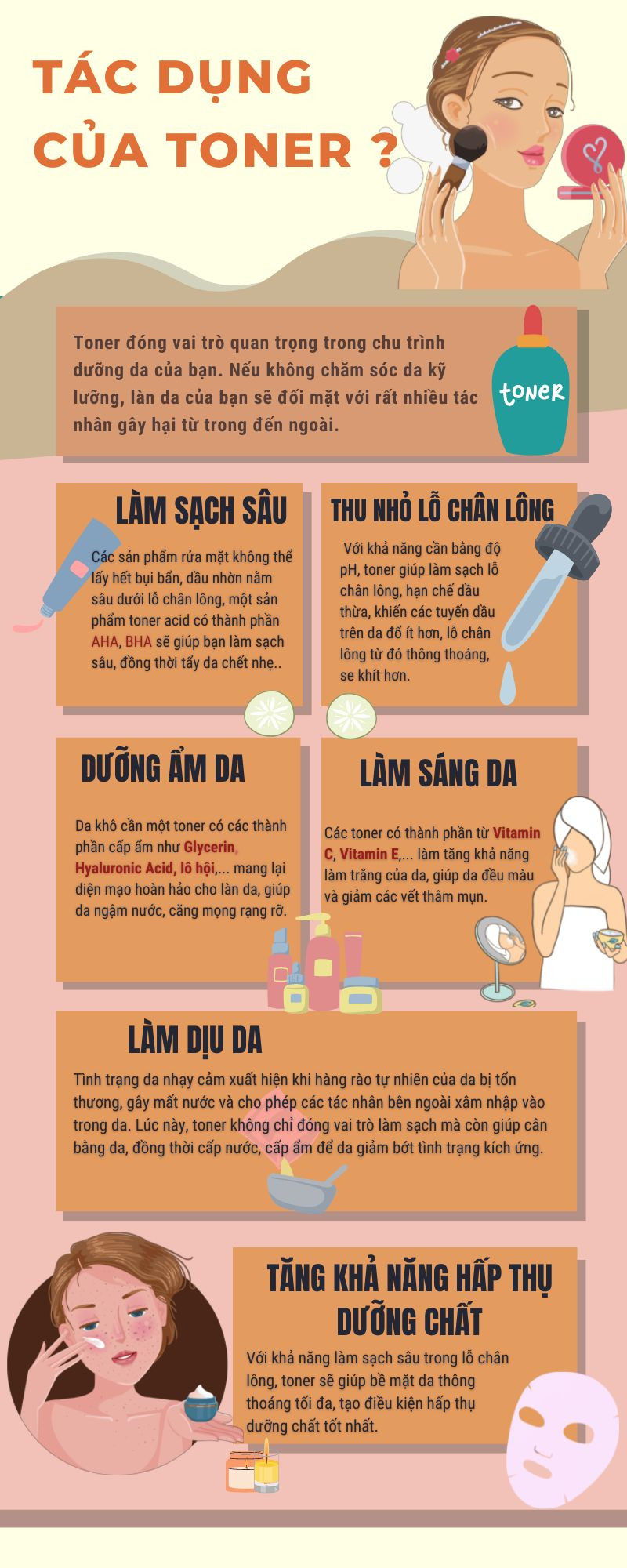 Toner đóng vai trò quan trọng trong chu trình dưỡng da của bạn. Bắt đầu từ độ tuổi 25, làn da sẽ đối mặt với các dấu hiệu lão hóa như nếp nhăn, da chảy nhão, sạm nám,... Vì vậy, nếu không có một chu trình dưỡng da cẩn thận, làn da sẽ đối mặt với rất nhiều tác nhân gây hại làm đẩy nhanh tốc độ lão hóa sớm. Vì vậy, sự có mặt của toner sẽ phần nào chăm sóc và bảo vệ da bạn.