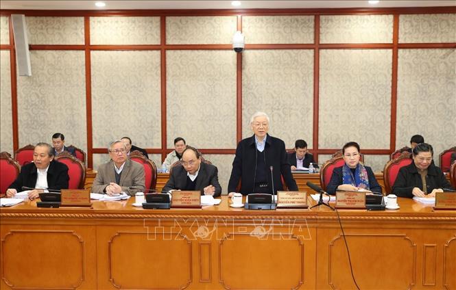 Tổng bí thư, Chủ tịch nước Nguyễn Phú Trọng chủ trì cuộc làm việc. Cùng tham dự có đại diện lãnh đạo các ban, bộ, ngành, cơ quan Trung ương.