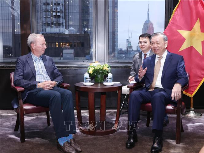 Nhân dịp tham dự Tuần lễ cấp cao Đại hội đồng Liên hợp quốc Khóa 79 và làm việc tại New York, Hoa Kỳ, chiều 23/9 (giờ địa phương), Tổng Bí thư, Chủ tịch nước Tô Lâm đã tiếp cựu Giám đốc điều hành (CEO) Google Eric Schmidt cùng một số doanh nghiệp trong lĩnh vực công nghệ cũng như quỹ đầu tư hàng đầu của Hoa Kỳ và thế giới gồm các tập đoàn Apple, Meta, Supermicro, hai quỹ đầu tư Blackstone, Warburg Pincus.