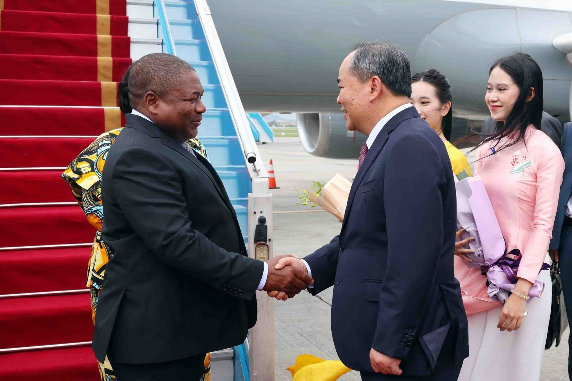 Nhận lời mời của Tổng Bí thư, Chủ tịch nước Tô Lâm và Phu nhân Ngô Phương Ly, Tổng thống Mozambique Filipe Jacinto Nyusi và Phu nhân Isaura Ferrao Nyusi đang có chuyến thăm chính thức Việt Nam từ 8-10/9.