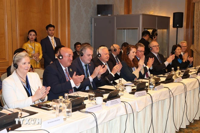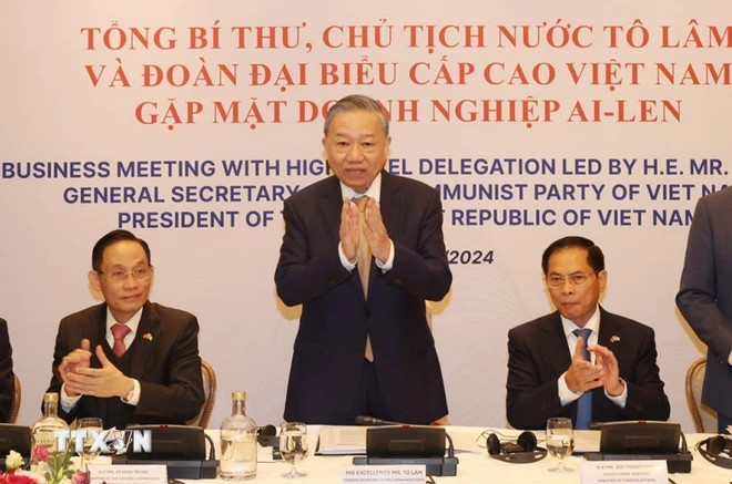 Trong khuôn khổ chuyến thăm cấp Nhà nước tới Ireland, sáng 3/10, tại thủ đô Dublin, Tổng Bí thư, Chủ tịch nước Tô Lâm và Đoàn đại biểu cấp cao Việt Nam đã gặp mặt các doanh nghiệp Ireland.