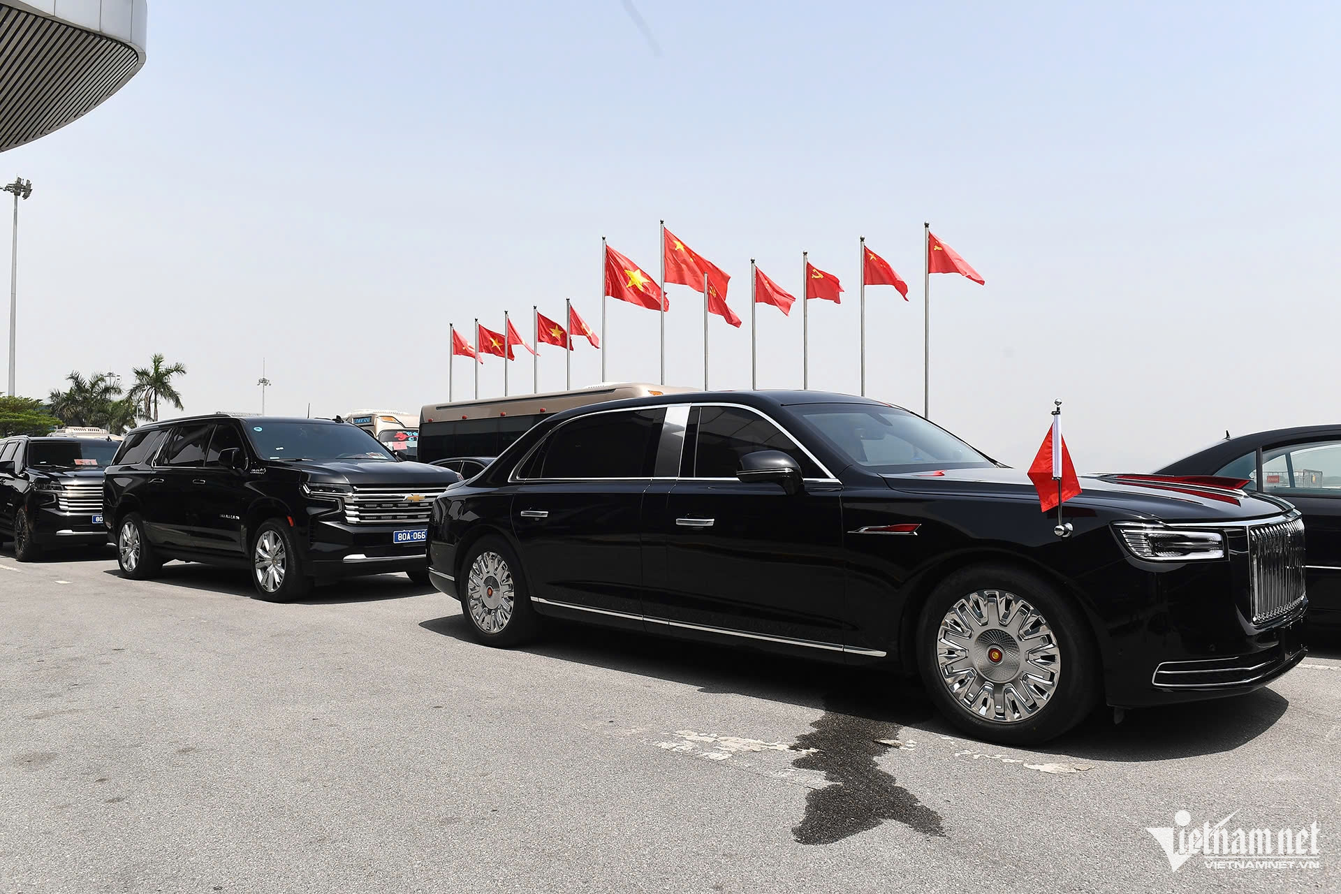 Ông Tập Cận Bình rời sân bay Nội Bài về khách sạn JW Marriott (Mễ Trì, Nam Từ Liêm, Hà Nội). Xe Hồng Kỳ đi giữa đoàn khoảng 10 xe; 3 mô tô cảnh sát dẫn đường và 9 mô tô hộ tống. Sau khi di chuyển qua các tuyến đường Võ Nguyên Giáp - cầu Nhật Tân - Võ Chí Công - Vành đai 2 - Láng - Trần Duy Hưng - Đại lộ Thăng Long - Đỗ Đức Dục, đoàn xe sẽ về đến khách sạn.