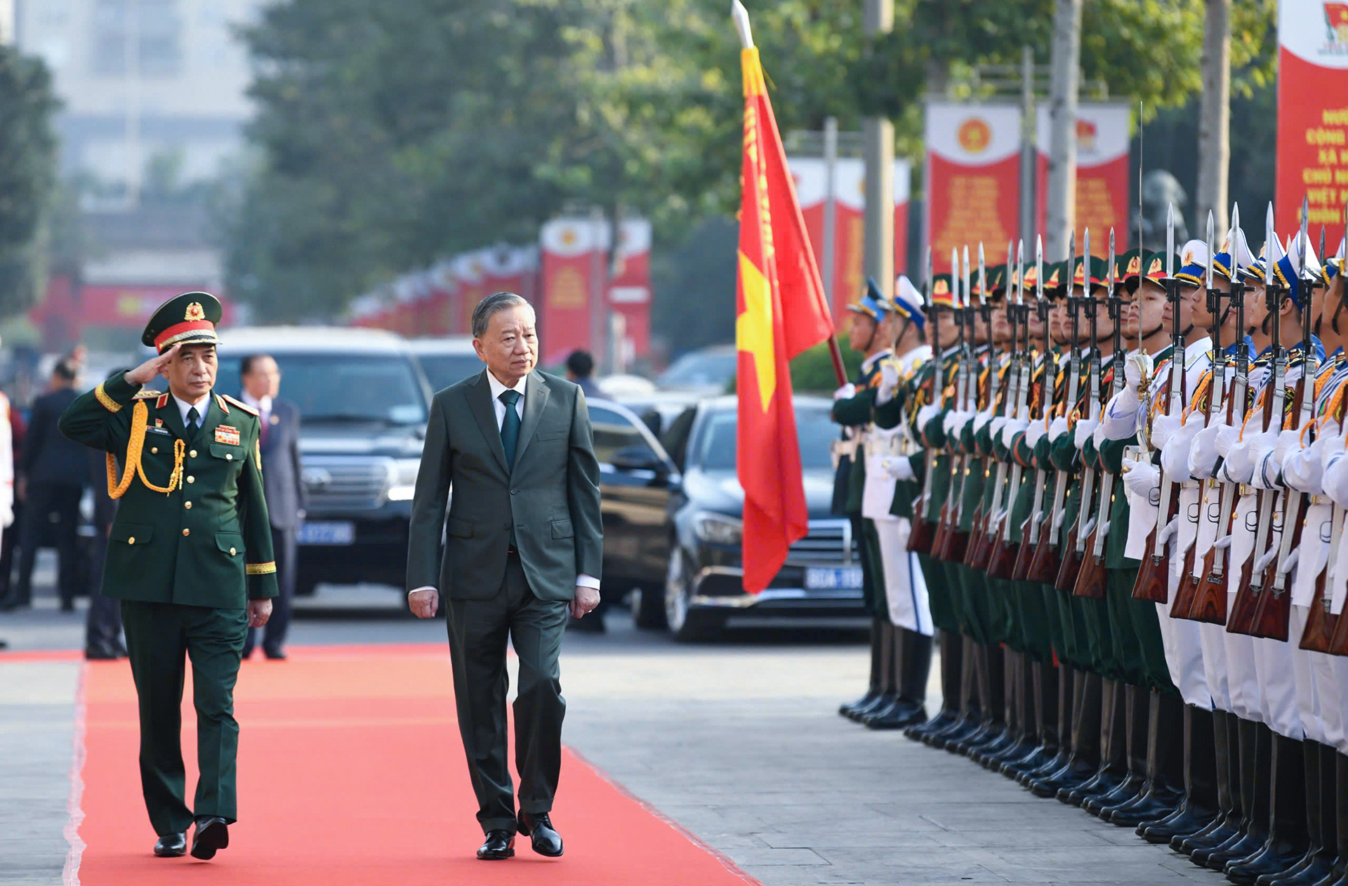 Tổng Bí thư Tô Lâm nhấn mạnh, Quân đội luôn luôn nêu cao tinh thần cảnh giác cách mạng, làm nòng cốt cùng toàn dân bảo vệ độc lập, chủ quyền, thống nhất và toàn vẹn lãnh thổ, bảo vệ Đảng, bảo vệ Chính quyền, bảo vệ nhân dân và chế độ xã hội chủ nghĩa...