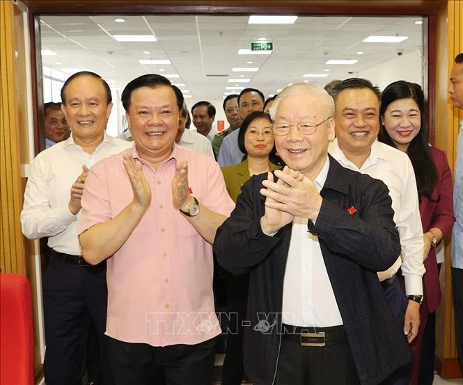 Tổng Bí thư Nguyễn Phú Trọng cùng cùng các đại biểu Quốc hội thành phố Hà Nội tiếp xúc cử tri tại quận Hai Bà Trưng.