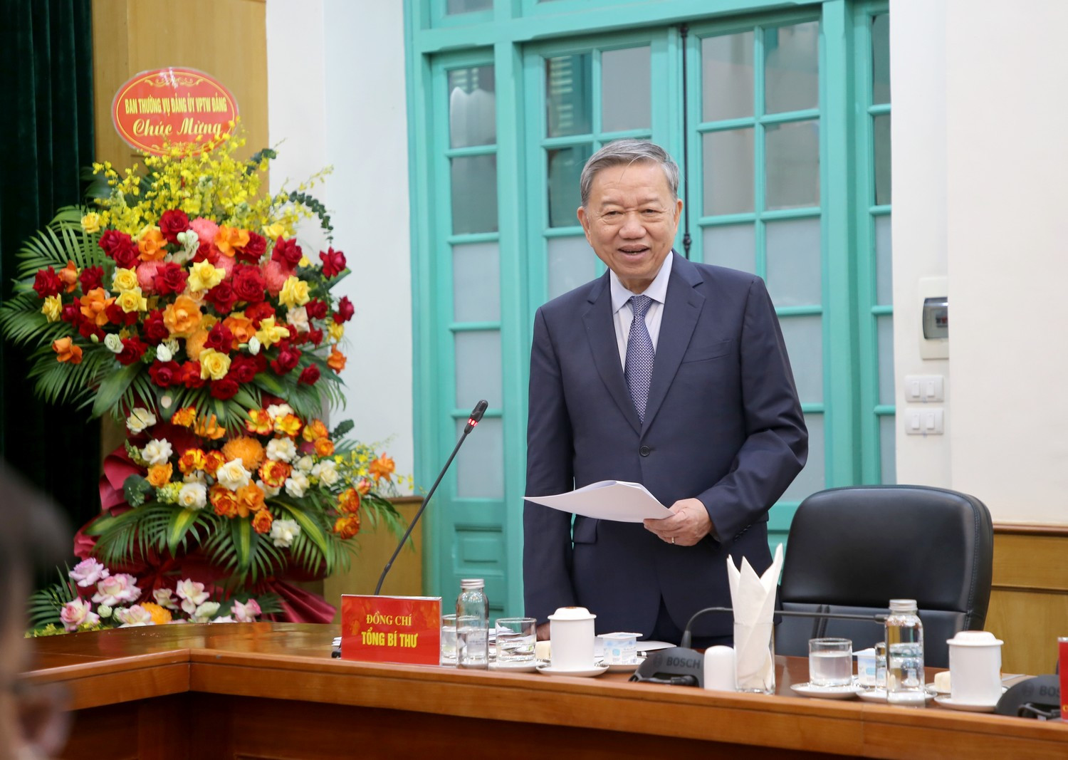 Chỉ trong thời gian ngắn, Bộ Chính trị đã ban hành 04 nghị quyết quan trọng, đó là Nghị quyết 57-NQ/TW về đột phá phát triển khoa học, công nghệ, đổi mới sáng tạo và chuyển đổi số quốc gia; Nghị quyết 59-NQ/TW về hội nhập quốc tế trong tình hình mới; Nghị quyết 66-NQ/TW về đổi mới công tác xây dựng và thi hành pháp luật đáp ứng yêu cầu phát triển đất nước trong kỷ nguyên mới; Nghị quyết 68-NQ/TW về phát triển kinh tế tư nhân. Đây là những trụ cột thể chế nền tảng tạo động lực mạnh mẽ cho sự phát triển đất nước trong kỷ nguyên mới. Bên cạnh đó, những nghị quyết mà đồng chí Tổng Bí thư chỉ đạo xây dựng về đột phá phát triển giáo dục, đào tạo; về chăm sóc sức khỏe nhân dân và các chính sách an sinh xã hội (miễn học phí cho học sinh từ mầm non đến trung học phổ thông; xóa nhà tạm, nhà dột nát, xây dựng nhà ở xã hội...); công tác đấu tranh phòng, chống tham nhũng, lãng phí, tiêu cực tiếp tục được đẩy mạnh với phương châm “không ngừng, không nghỉ, không có vùng cấm, không có ngoại lệ, đặt lợi ích quốc gia, dân tộc lên trên hết, trước hết”; công tác phòng chống lãng phí, tập trung giải quyết các dự án gây lãng phí, dư luận xã hội quan tâm, công tác đấu tranh chống hàng giả, đặc biệt là thuốc chữa bệnh, bảo đảm an toàn thực phẩm... đã và đang tạo khí thế mới, niềm tin mới trong cán bộ, đảng viên và nhân dân.