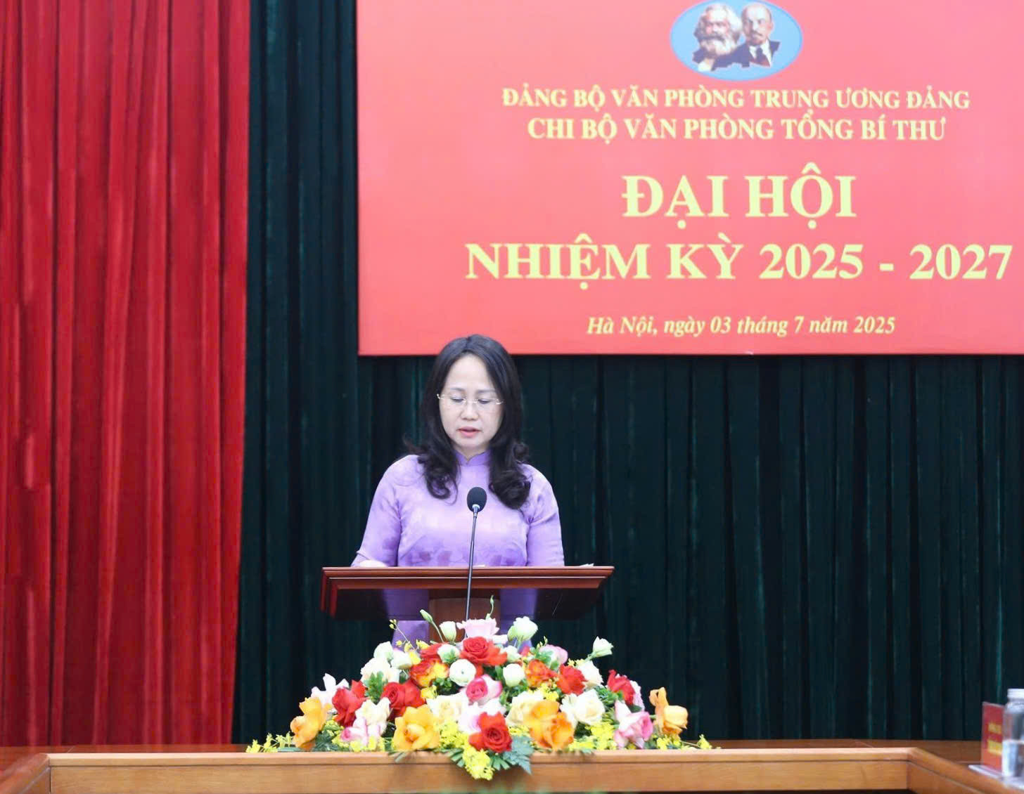Phát biểu chỉ đạo tại Đại hội, thay mặt Đảng ủy cơ quan Văn phòng Trung ương Đảng, đồng chí Lâm Thị Phương Thanh, Ủy viên Trung ương Đảng, Phó Chánh Văn phòng Thường trực Văn phòng Trung ương Đảng, Bí thư Đảng ủy cơ quan khẳng định, Chi bộ Văn phòng Tổng Bí thư là chi bộ có vị trí rất đặc biệt thuộc Đảng bộ Văn phòng Trung ương Đảng, là chi bộ có vinh dự được đồng chí lãnh đạo cao nhất của Đảng tham gia sinh hoạt Đảng; đảng viên trong chi bộ gồm các đồng chí trợ lý, thư ký của đồng chí Tổng Bí thư, là những đồng chí trực tiếp tham mưu, giúp việc, phục vụ công tác lãnh đạo, chỉ đạo, điều hành của đồng chí Tổng Bí thư đối với Đảng, đối với đất nước. Vì vậy, việc thực hiện nhiệm vụ chính trị của Chi bộ và đảng viên của Chi bộ có ý nghĩa đặc biệt quan trọng trong suốt quá trình hình thành, hoạch định, ban hành, lãnh đạo, chỉ đạo triển khai thực hiện và tổng kết đánh giá việc thực hiện các chủ trương, định hướng lớn, quan trọng phát triển đất nước, xây dựng Đảng, xây dựng hệ thống chính trị.