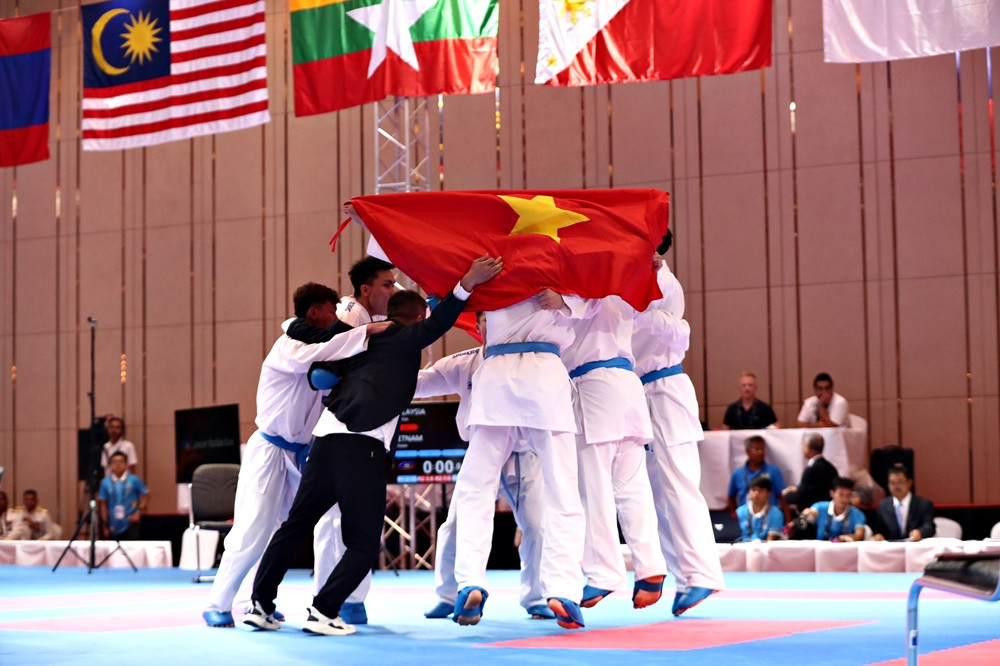 Giành chiến thắng nghẹt thở 3-2 trước các VĐV của Malaysia, đội tuyển kumite Việt Nam gồm các võ sĩ Chu Văn Đức, Đỗ Thanh Nhân, Đỗ Mạnh Hùng, Võ Văn Hiền, Trần Lê Tấn Đạt, Nguyễn Viết Ngọc Hiệp, Lò Văn Biển giành HCV nội dung đồng đội nam.