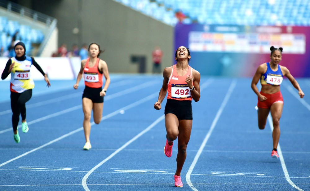 Chân chạy của Singapore tỏ ra không có đối thủ khi cán đích đầu tiên với thời gian 21 giây 97.